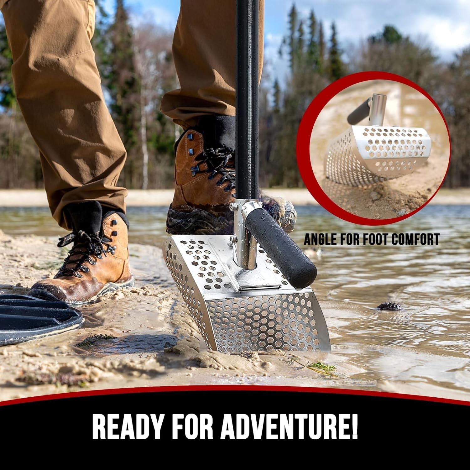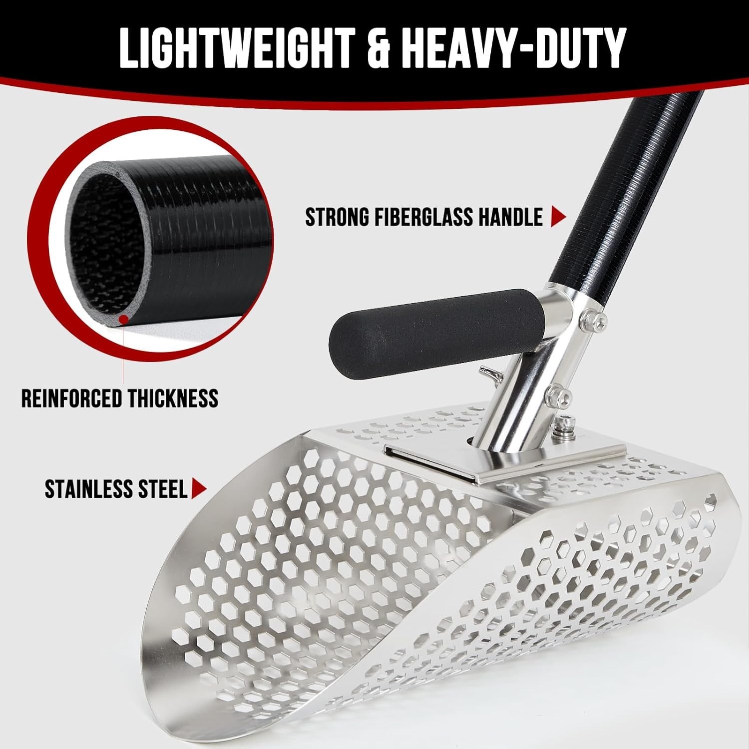 Heavy-Duty Stainless Steel Sand Scoop with Long Fiberglass Handle for Metal D...