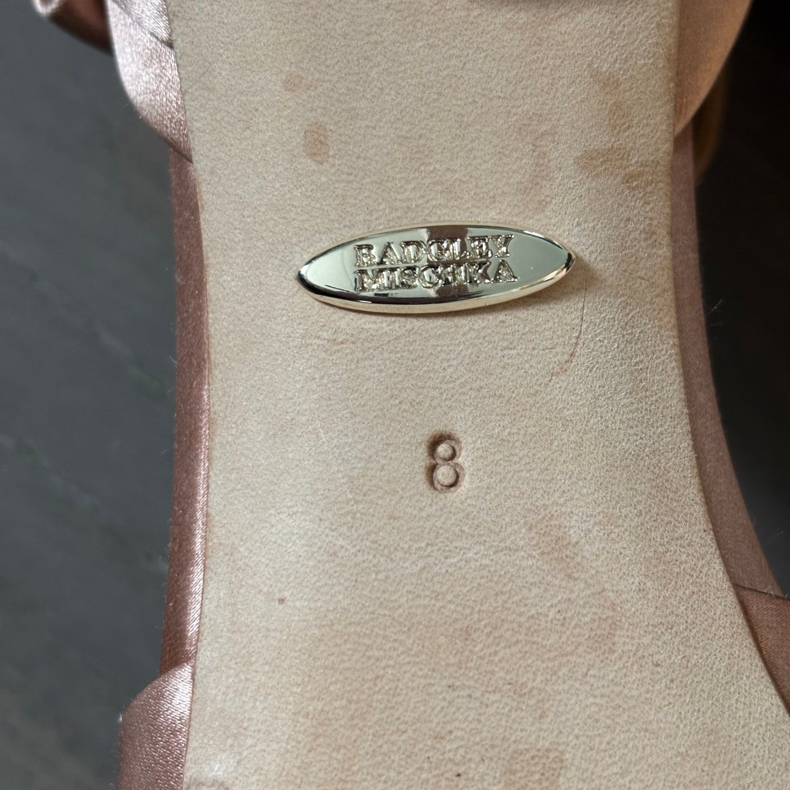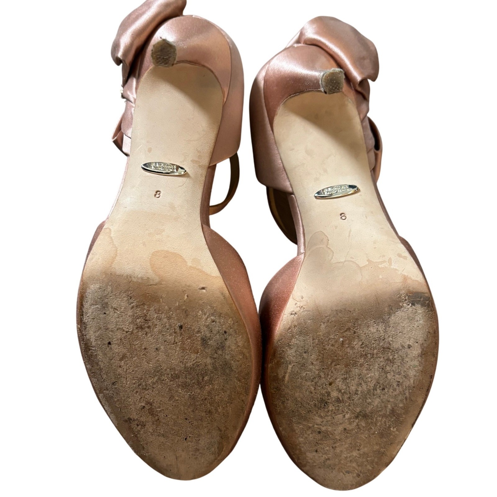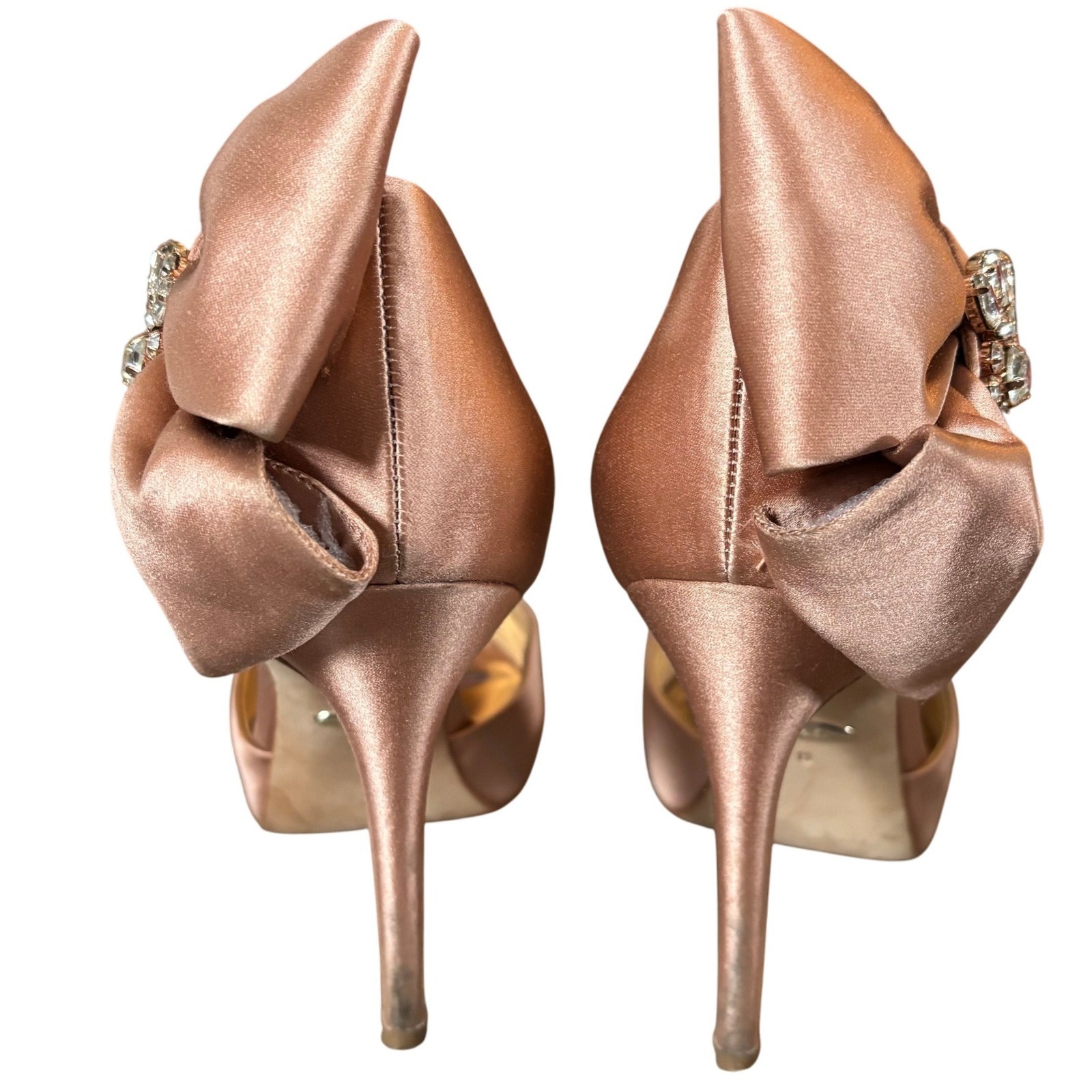 как выглядит Badgley Mischka Samra Bow Pump in Pink Satin Sz 8 Feminine Faux Crystal фото