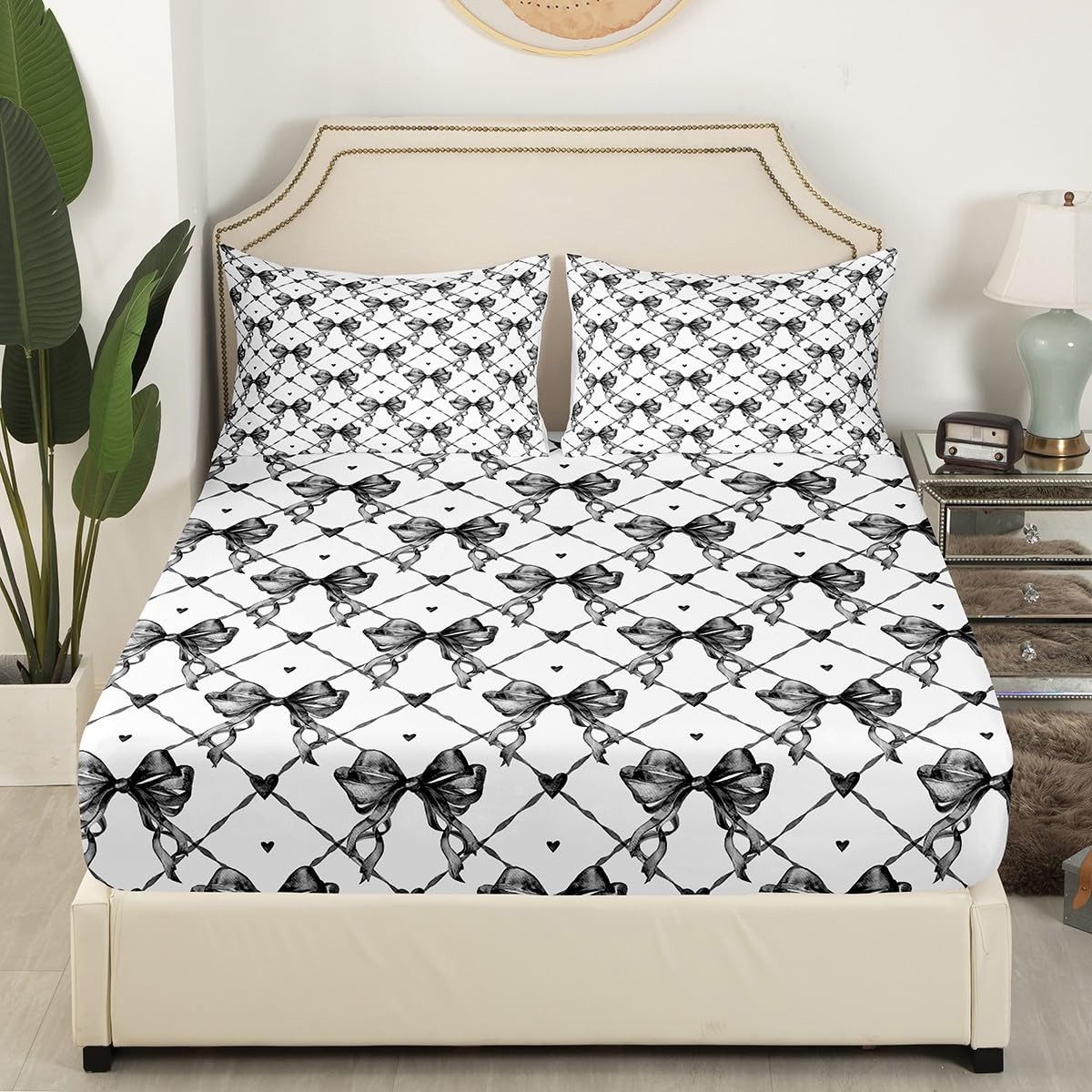 Bow Fitted Sheet Full Size Girls Bow Bed Sheet Set for Boys Teens Decor Cute ...