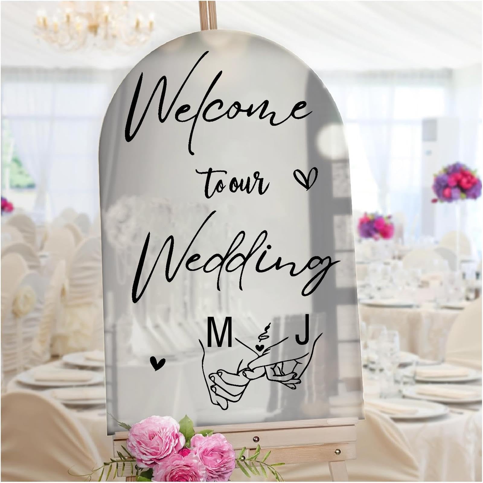 как выглядит Welcome to Our Wedding Signs Decals Wedding Welcome Sign Selfie Mirror Decal ... фото