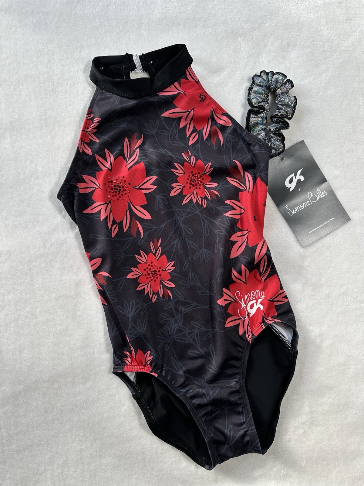 NEW Simone Biles GK Elite LEOTARD Gymnastics FLOWER Bling Flower RED Tank AXS