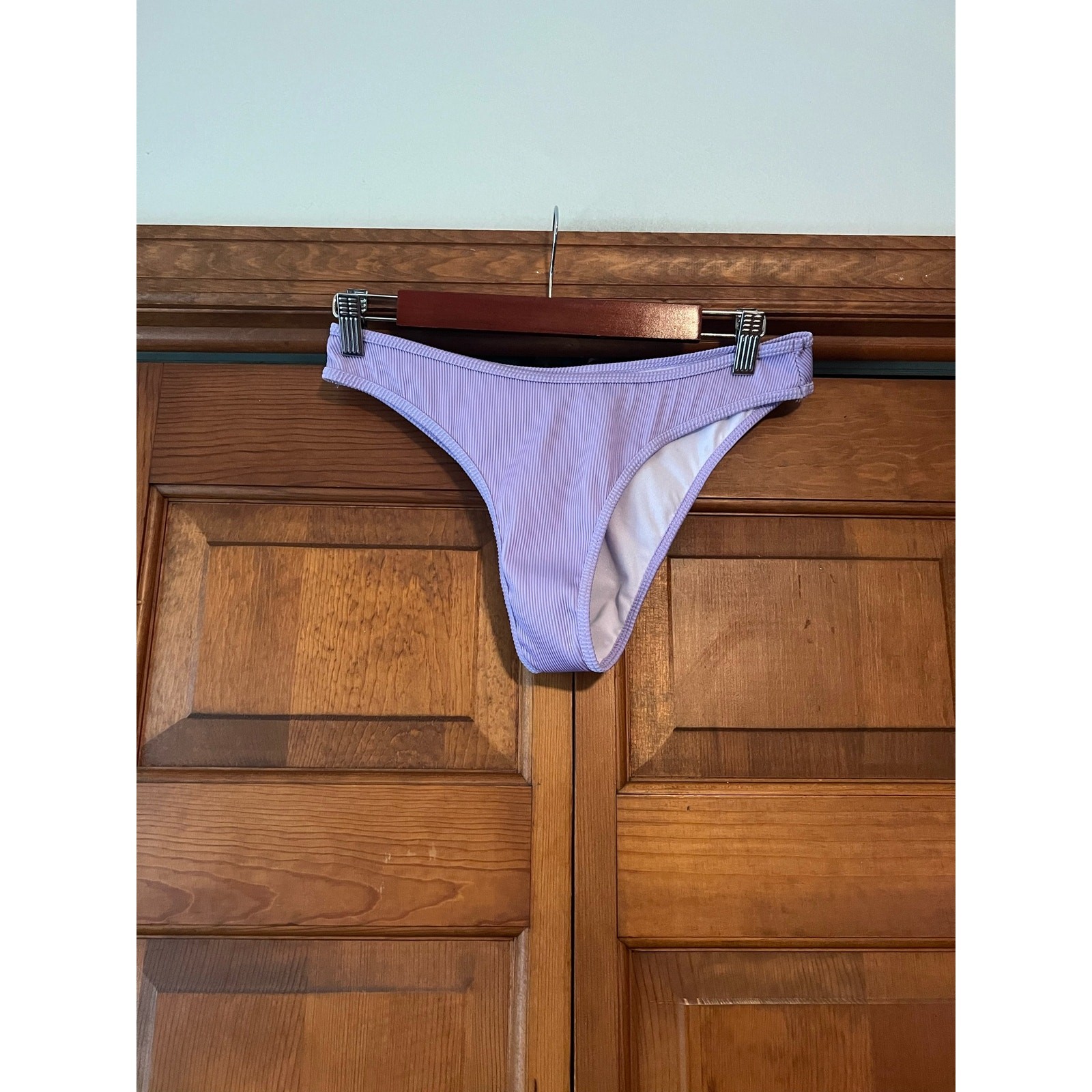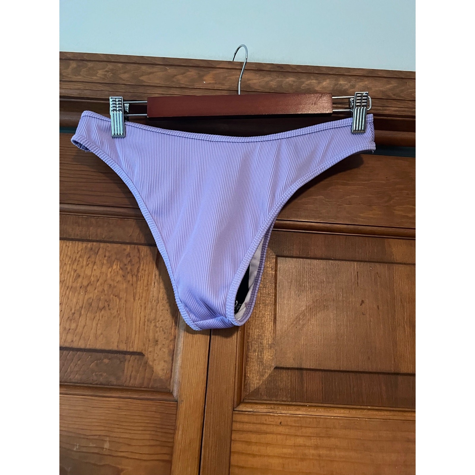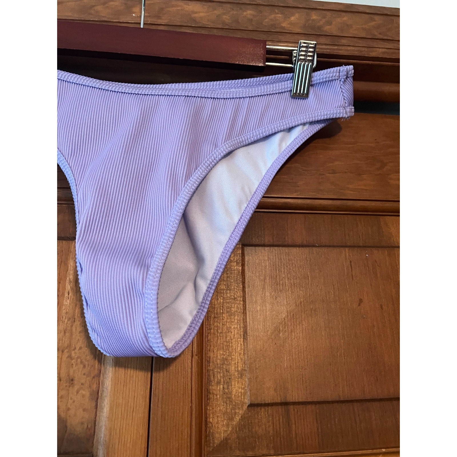 как выглядит NWOT Zaful Womens Ribbed Knit Cheeky High Leg Bikini Bottom Purple Size 8 фото