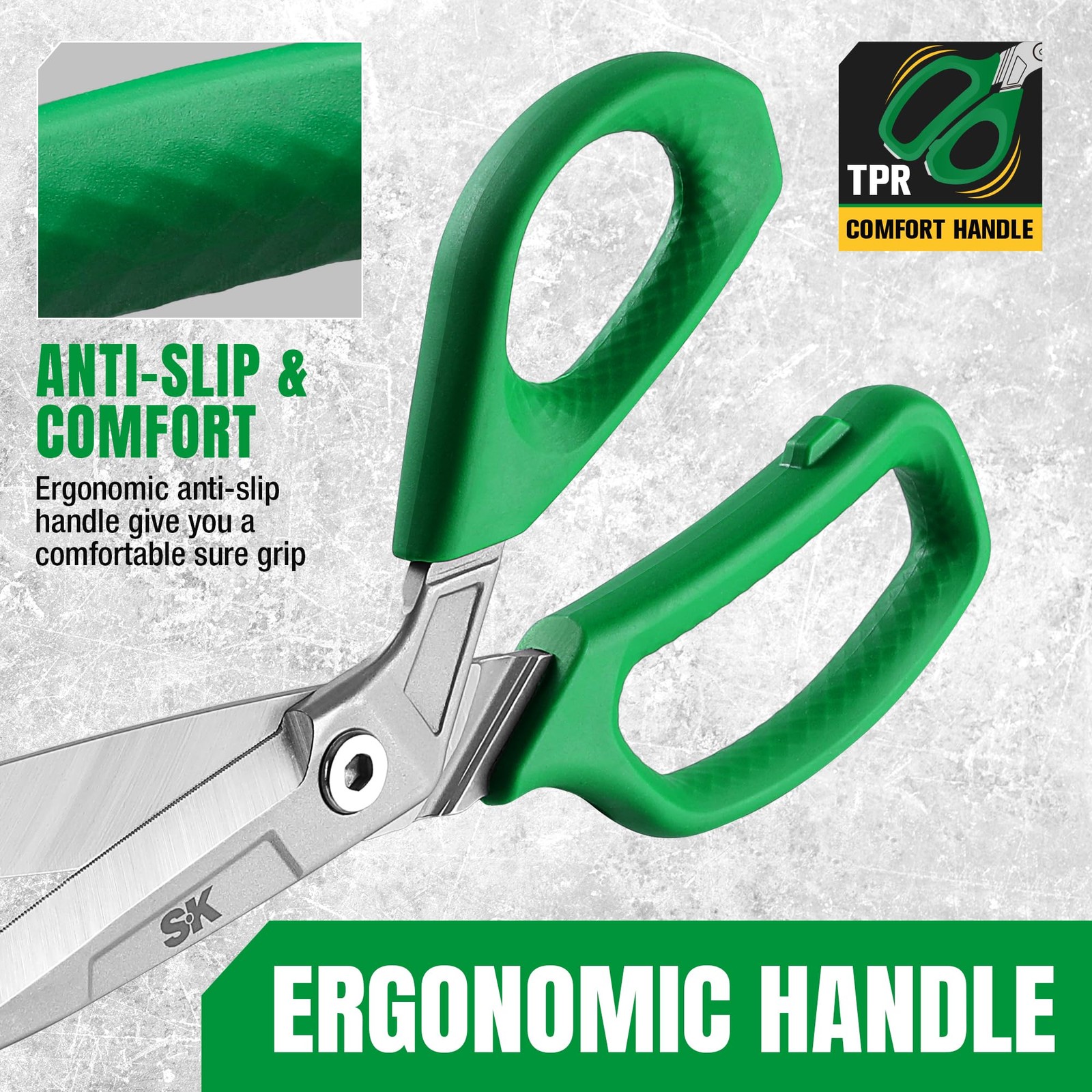 SK 10 Heavy Duty Scissors, All Purpose Shears, Premium CR-V 10 Inch, Green