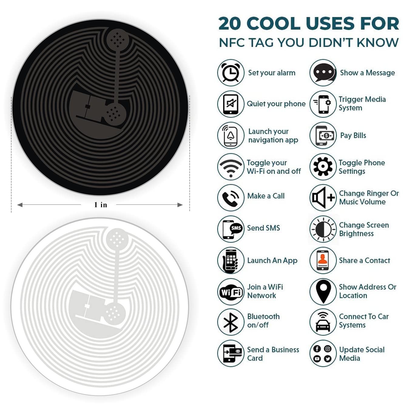 как выглядит 20Pcs Anti-Metal NFC Tags NTAG215 Stickers Work On Metal 20pcs, Black white фото