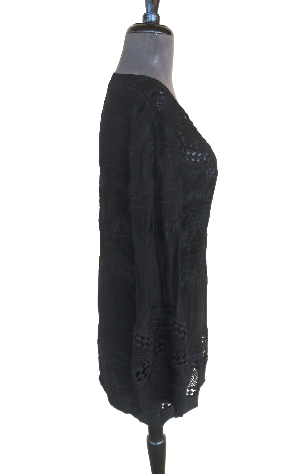 La Blanca XS Dress Tunic Bell Sleeve Swim Cover-Up Black Embroidered Aztec NWOT