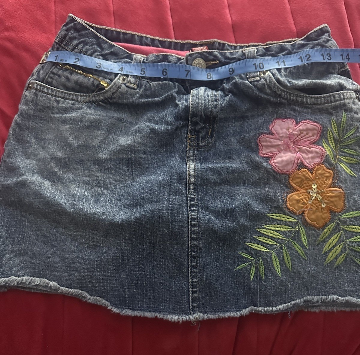 как выглядит Justice Y2K Girls Beachy Floral Denim Skirt O фото