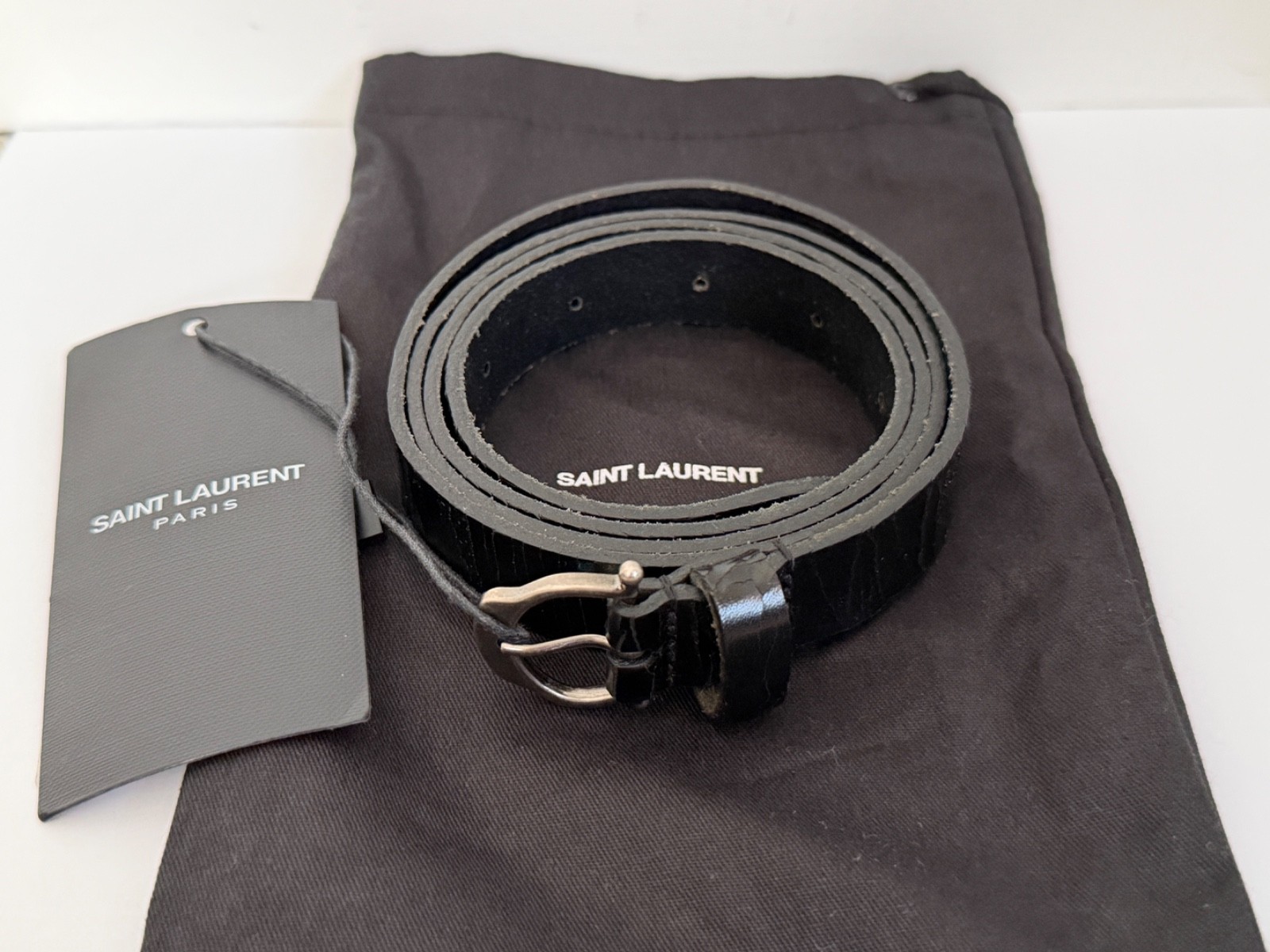 как выглядит NWT Saint Laurent YSL Horseshoe Buckle Black Cracked Leather Belt 95 US 38 675 фото