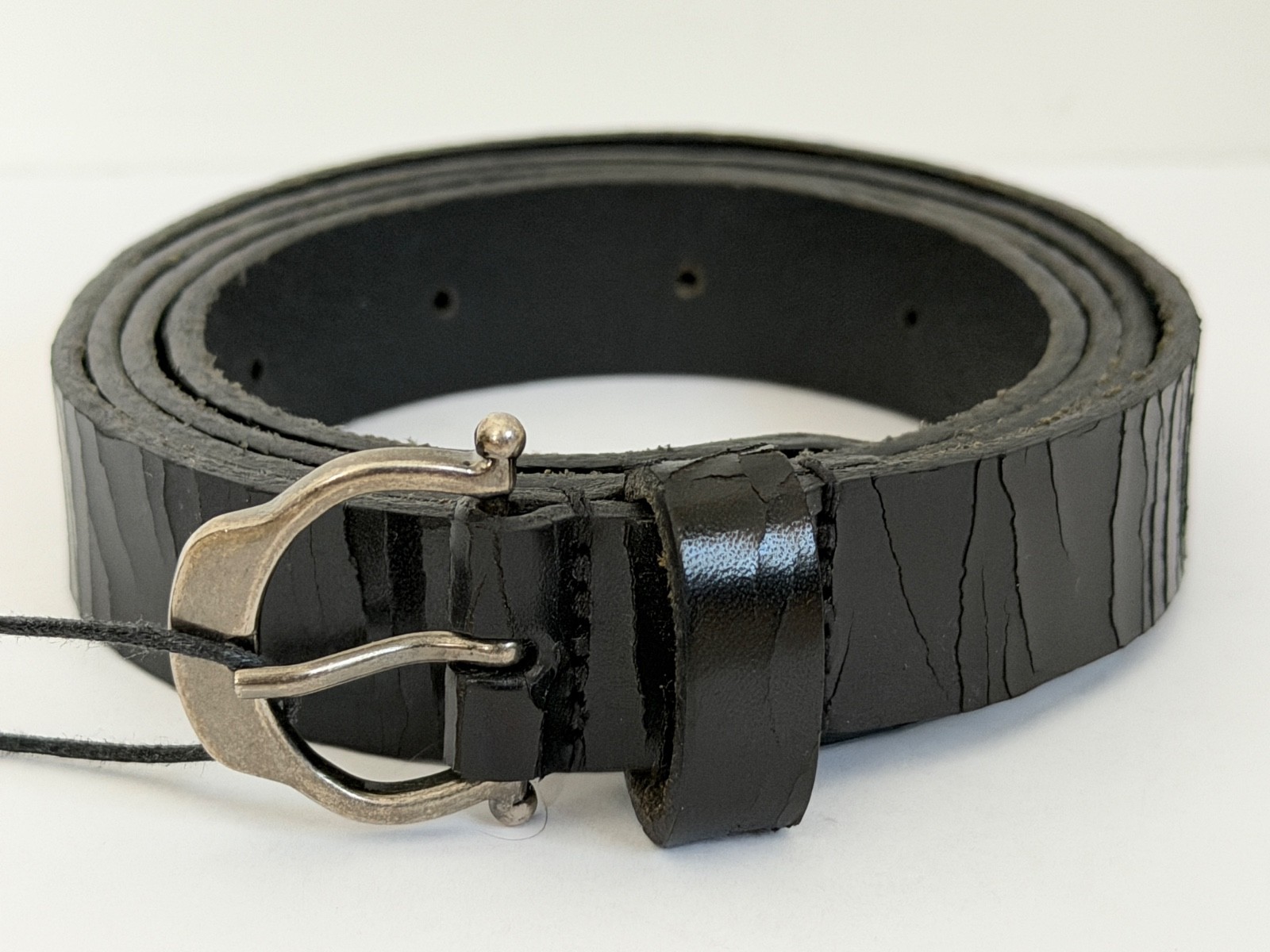 NWT Saint Laurent YSL Horseshoe Buckle Black Cracked Leather Belt 95 US 38 675