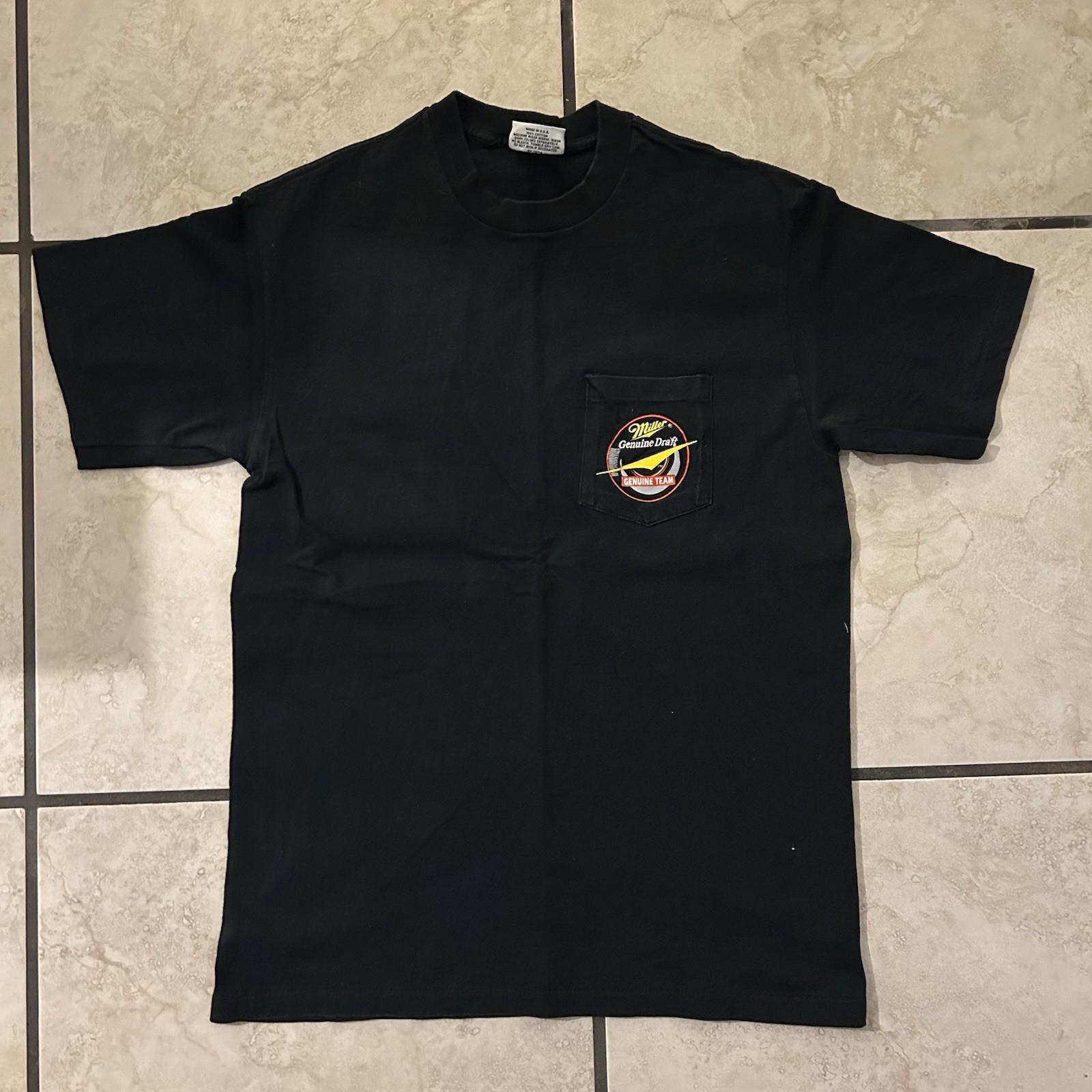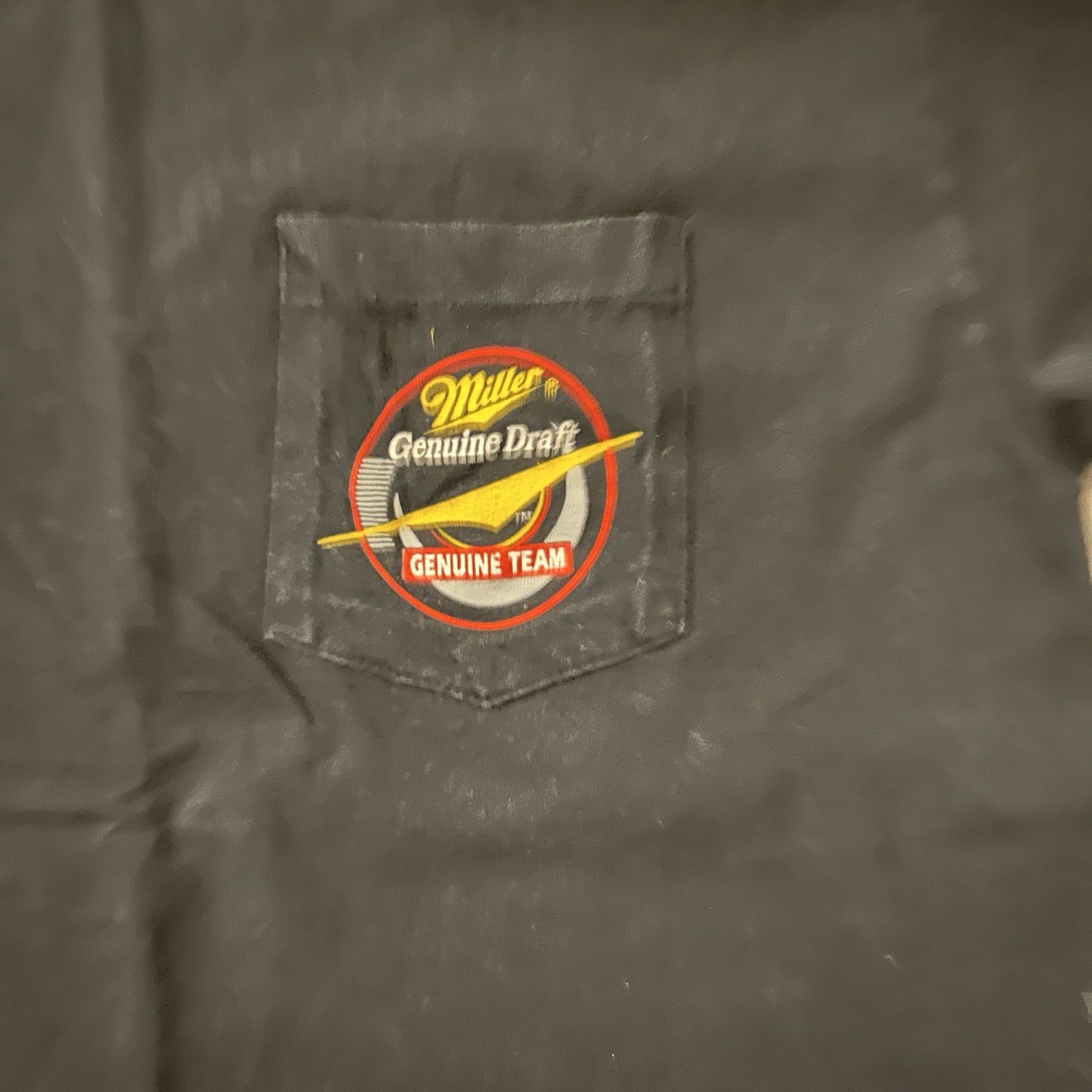 Vintage 90s Miller Draft Rusty Wallace NASCAR Stock Car Pocket T Shirt Sz Large