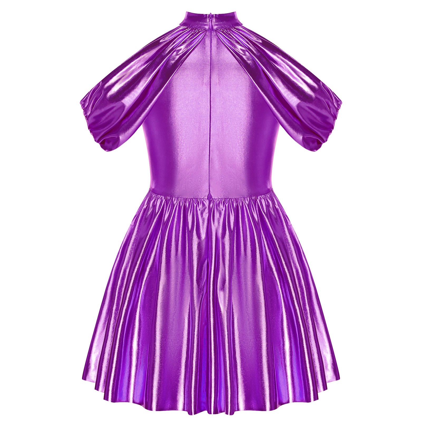 Kids Girls Metallic Shiny Party Dress with 3D Flower Brooch Birthday Gown Party