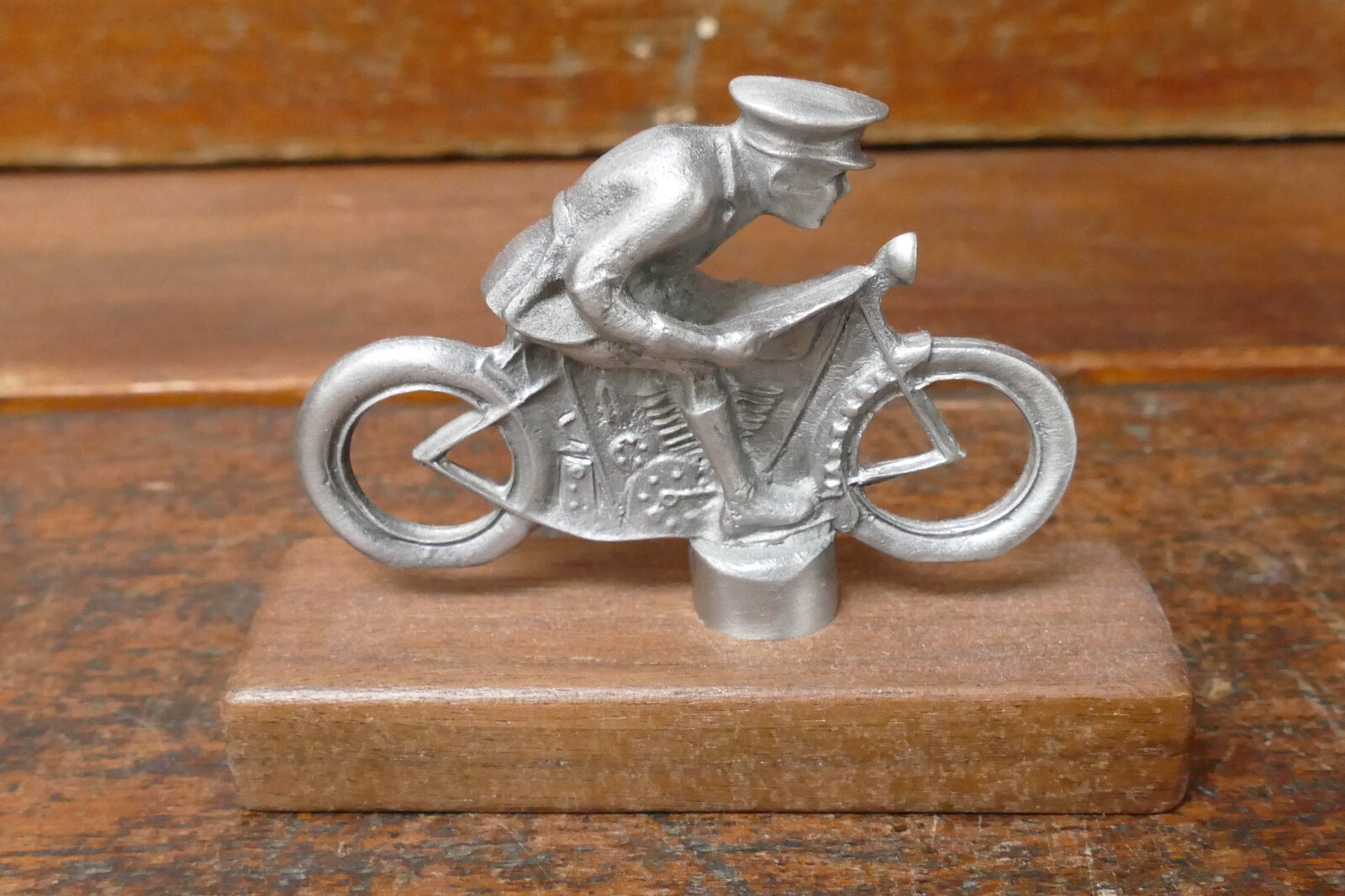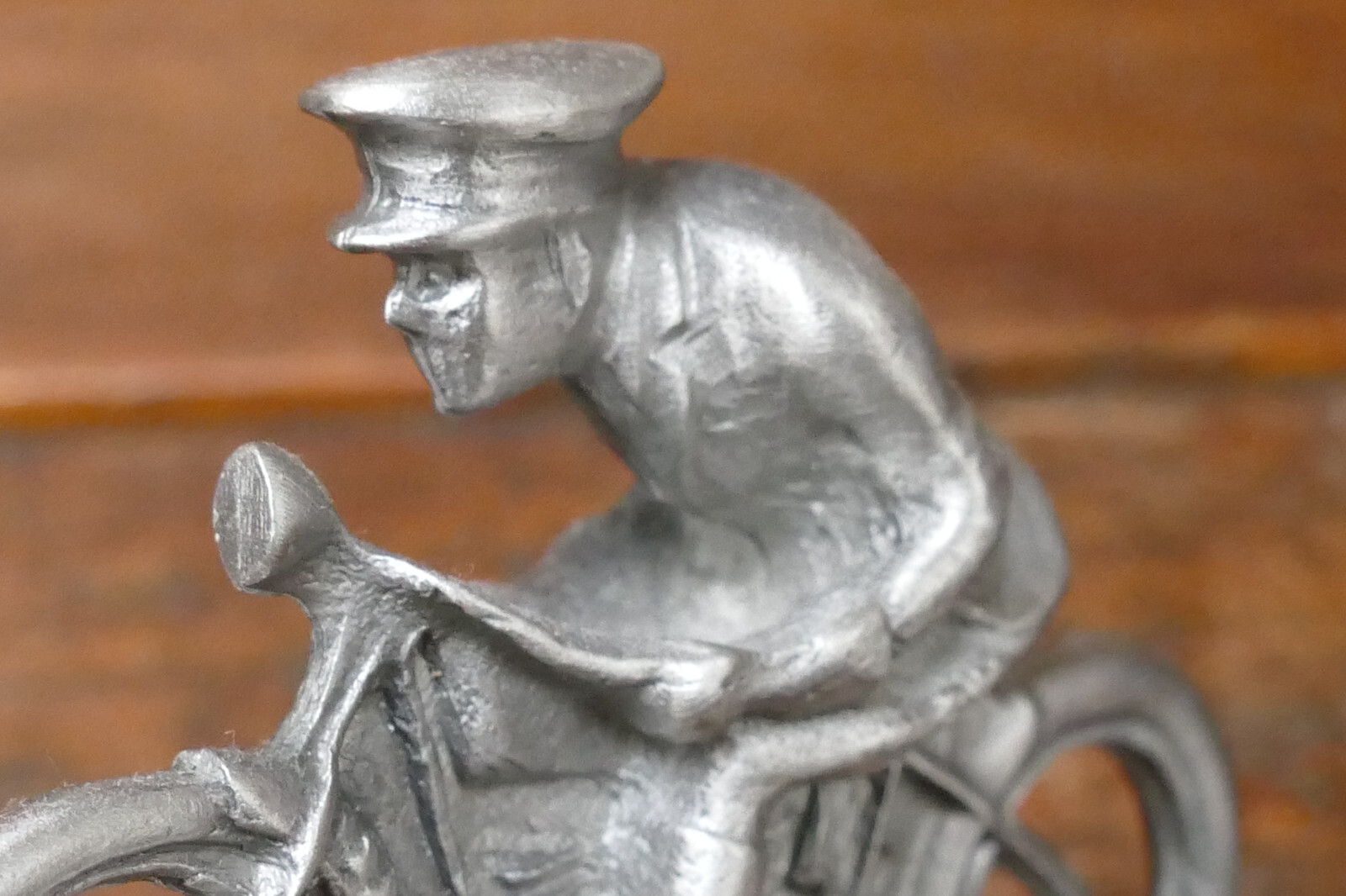 как выглядит Vintage Barclay Manoil Cast Lead Slush Policeman Motorcycle Reproduction w Stand фото
