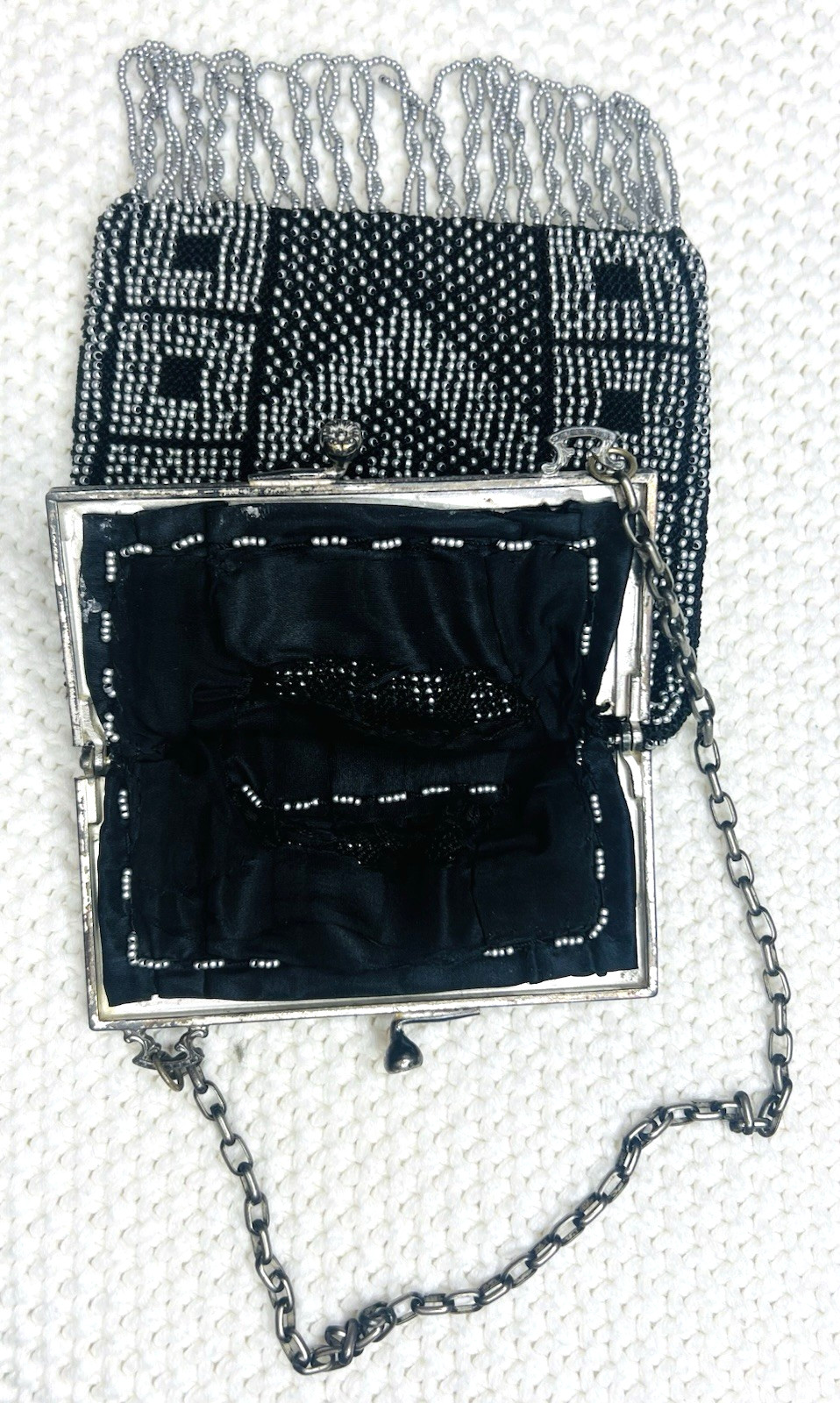 VTG Silver Black Beaded Mesh Art Deco Flapper Bag Evening Whiting Davis