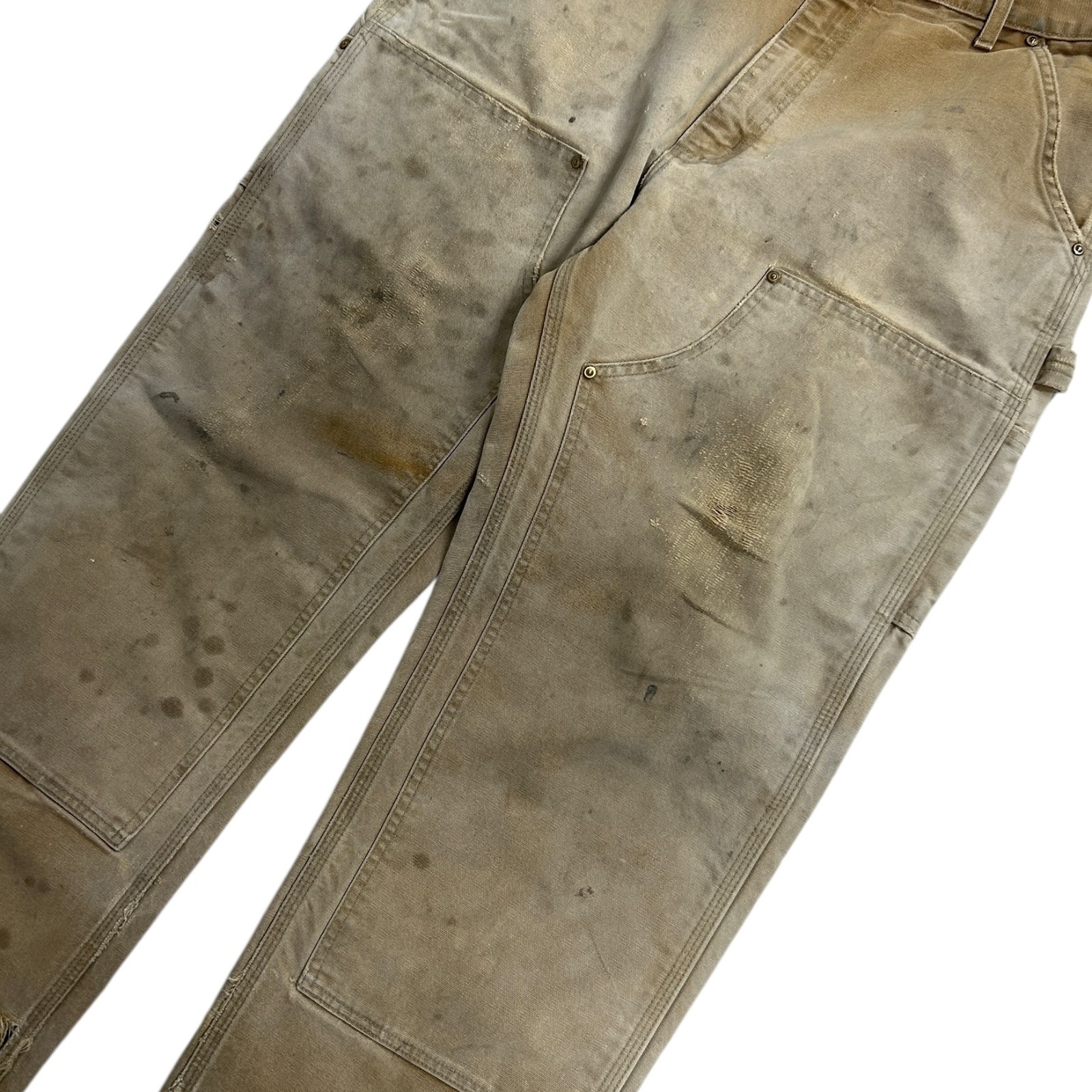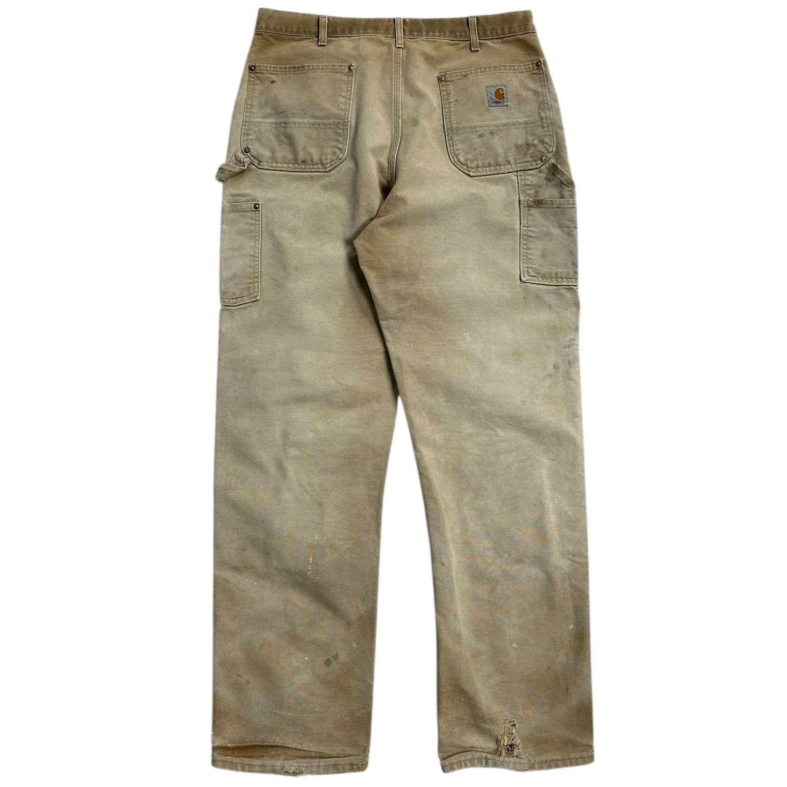 Vintage 90s Carhartt Double Knee Light Brown Thrashed Work Pants Size 34