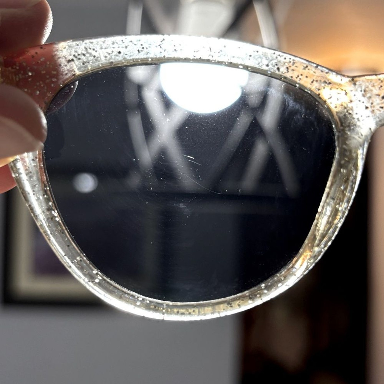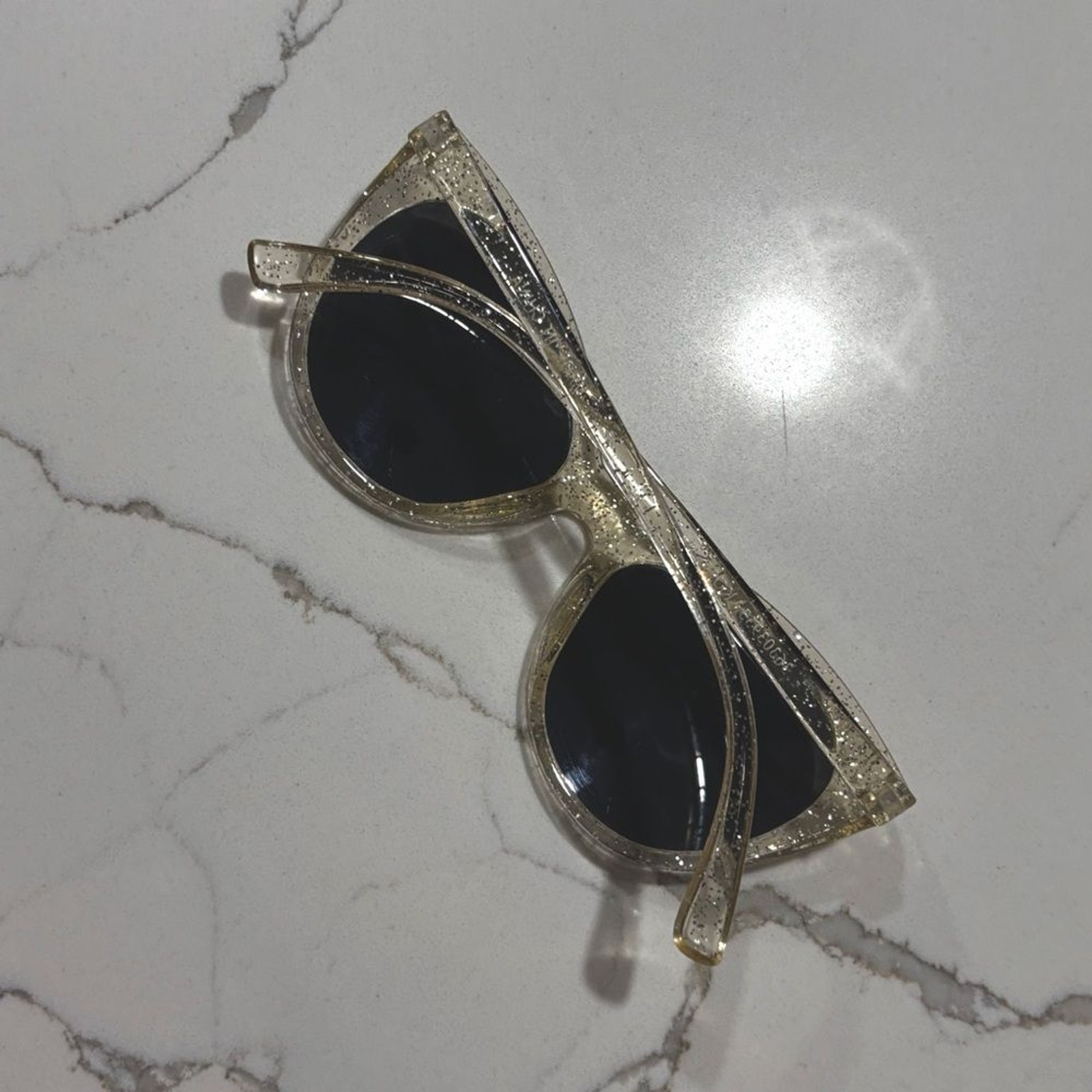 как выглядит Clear Gold Sparkle Glitter Translucent Cat Eye Sunglasses Girls Youth фото
