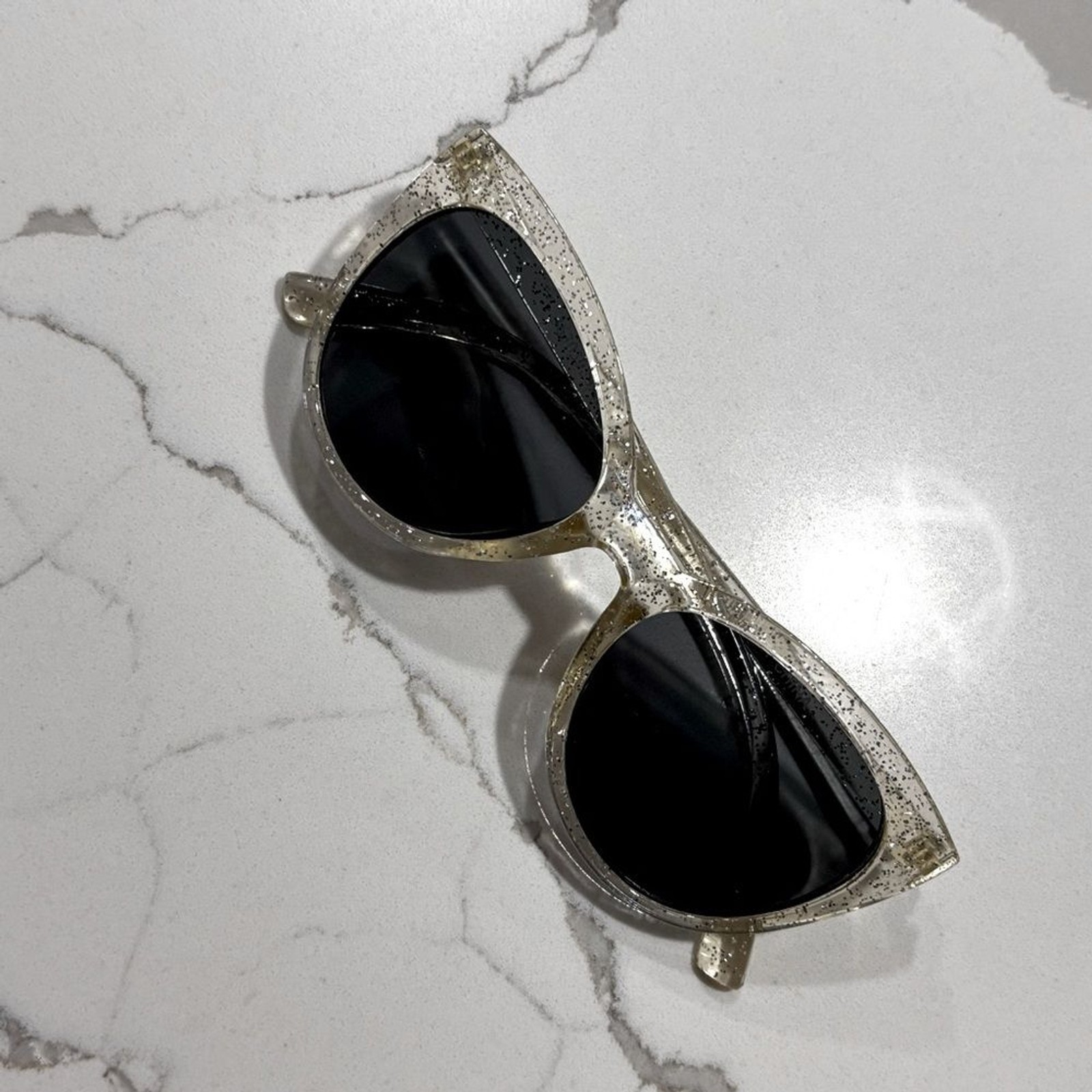 Clear Gold Sparkle Glitter Translucent Cat Eye Sunglasses Girls Youth