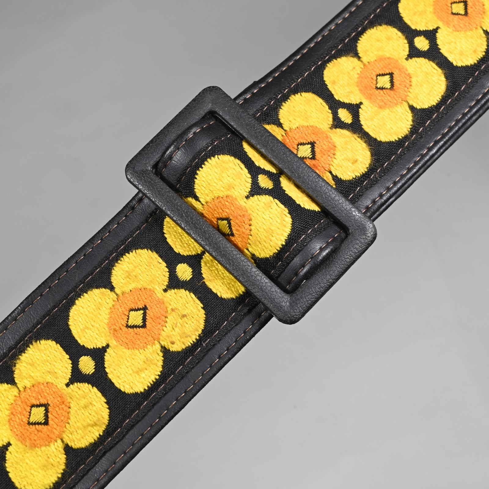 Vintage Hippie Embroidered Jacquard Guitar Strap 1970s Japan - Leather Ends