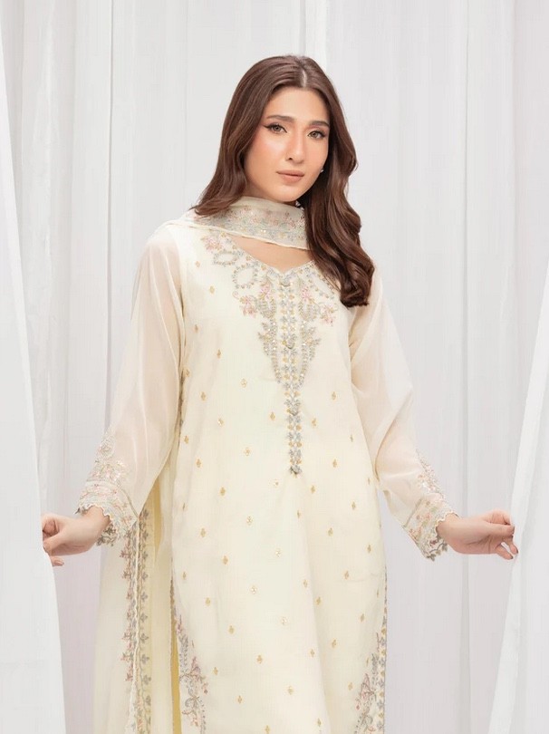 Pakistani clothes Ready to wear - Embroidered Wrinkle Chiffon Suit - 3 PC NEW