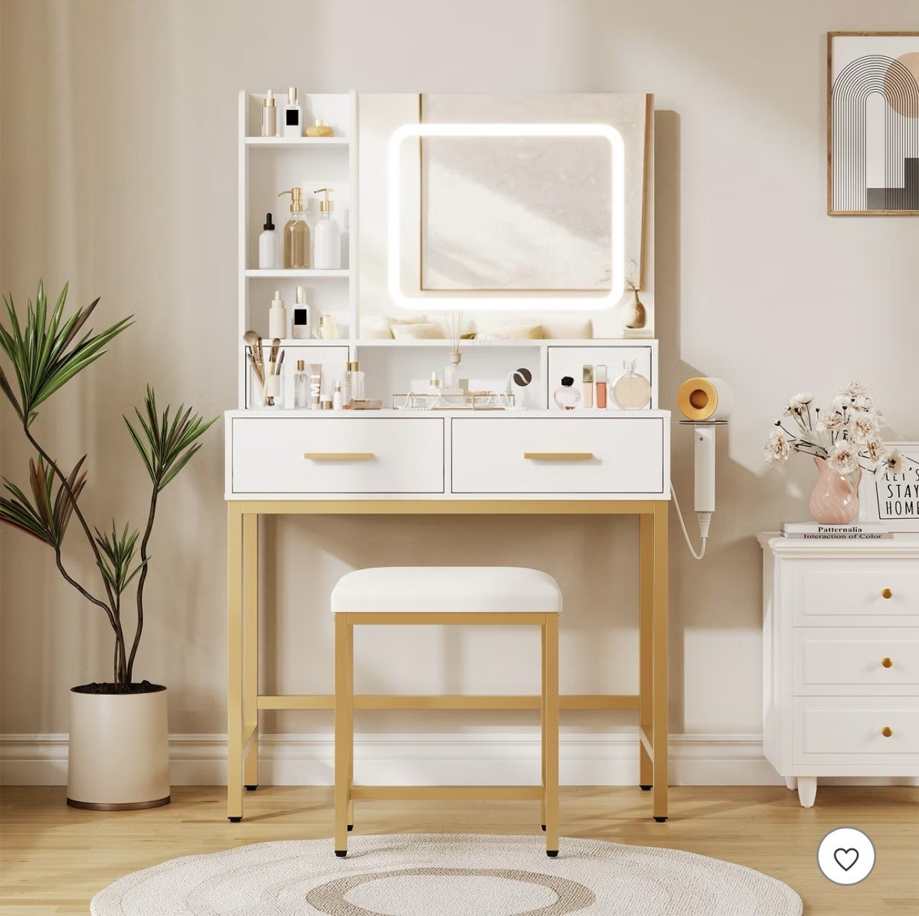 как выглядит 53 Inch Vanity Desk with Mirror and Light Drawers Charging Station фото
