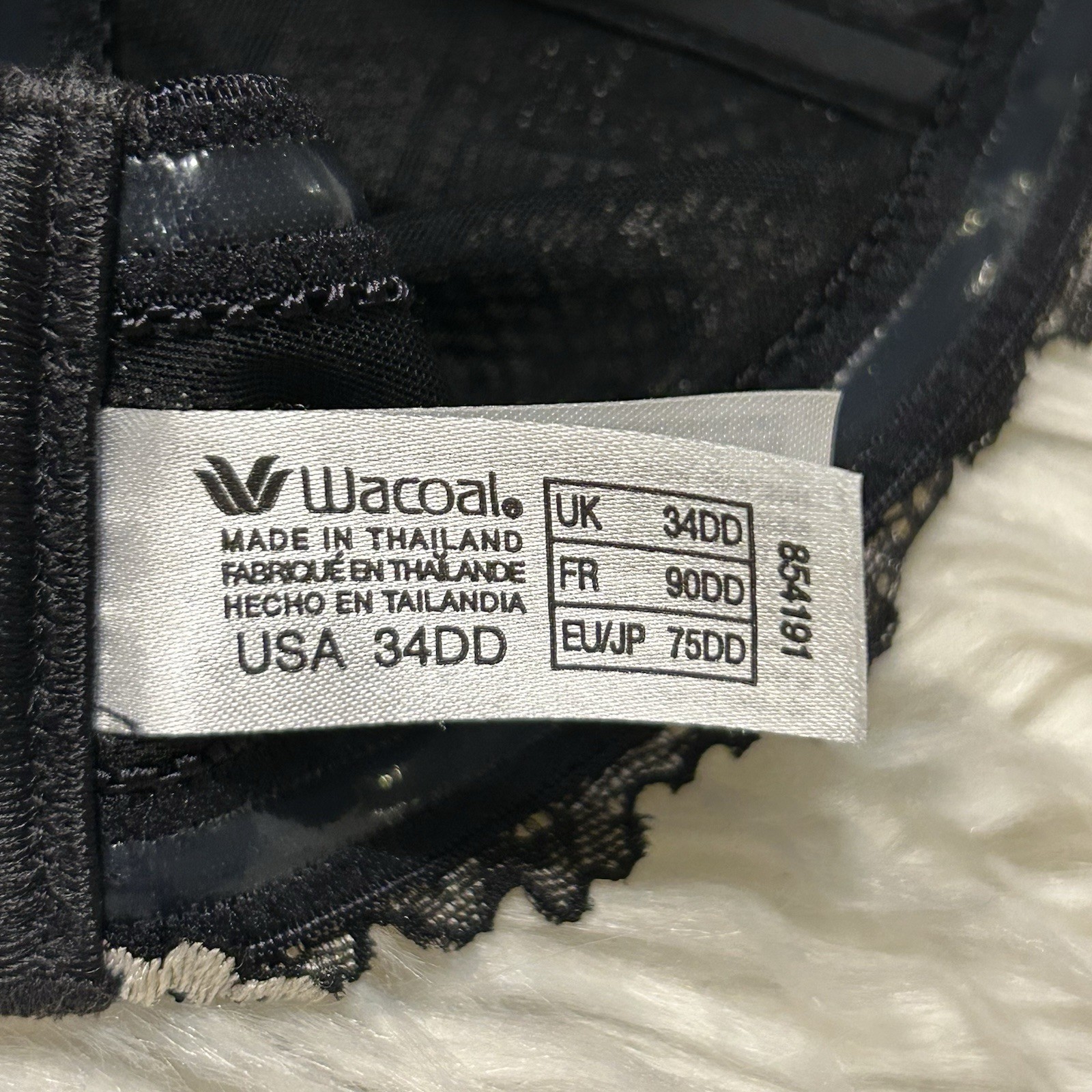 Wacoal 34DD Bra Black Embrace Lace Push Up Strapless 854191 Underwire Back Close