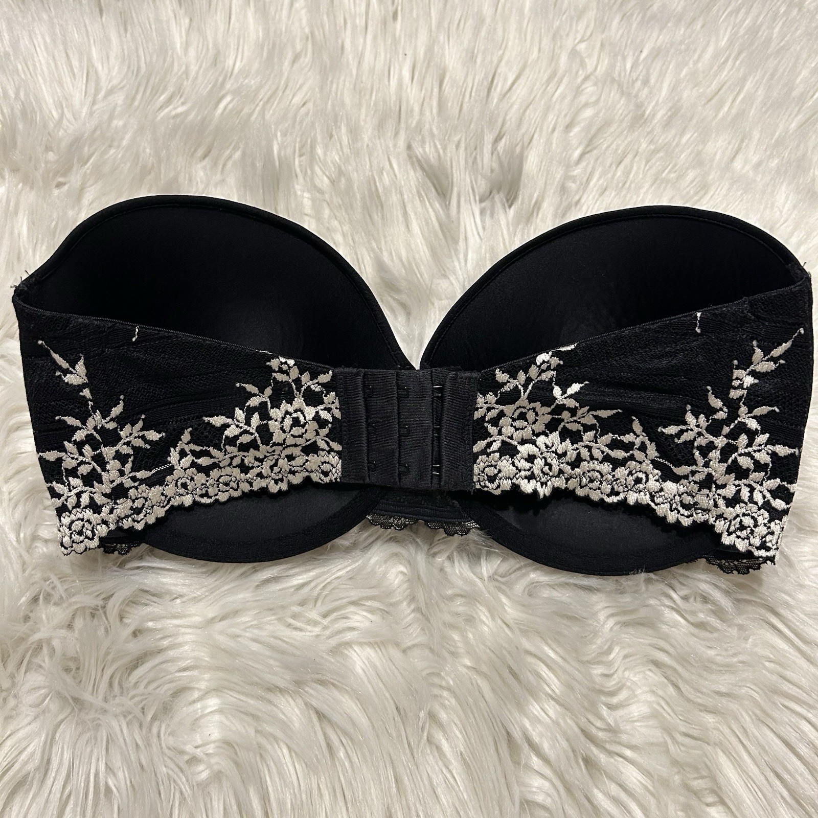 как выглядит Wacoal 34DD Bra Black Embrace Lace Push Up Strapless 854191 Underwire Back Close фото