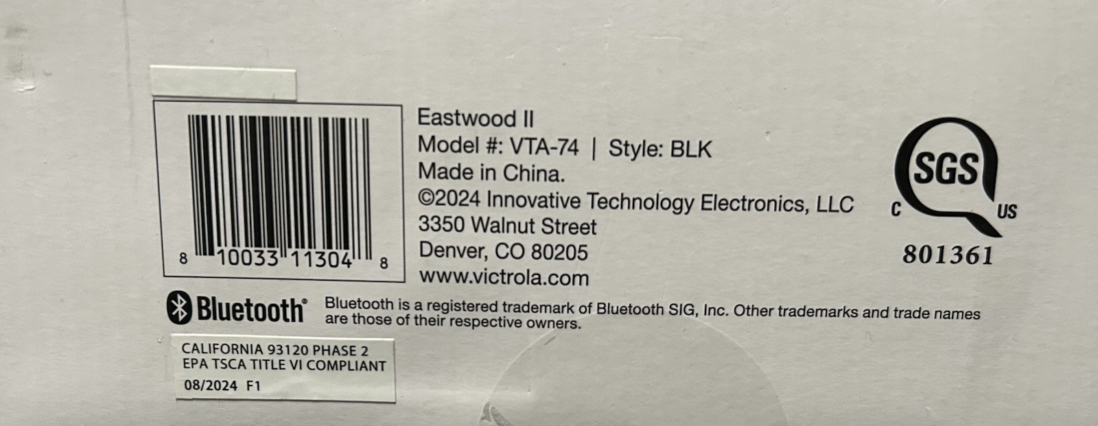 Victrola Bluetooth Eastwood II Record Player with Speakers - 1.2E 2 Volts, Black