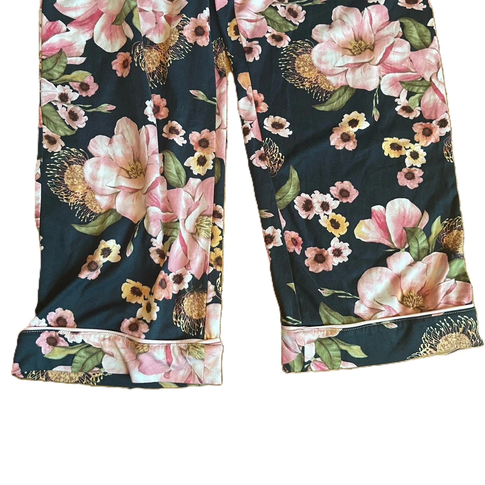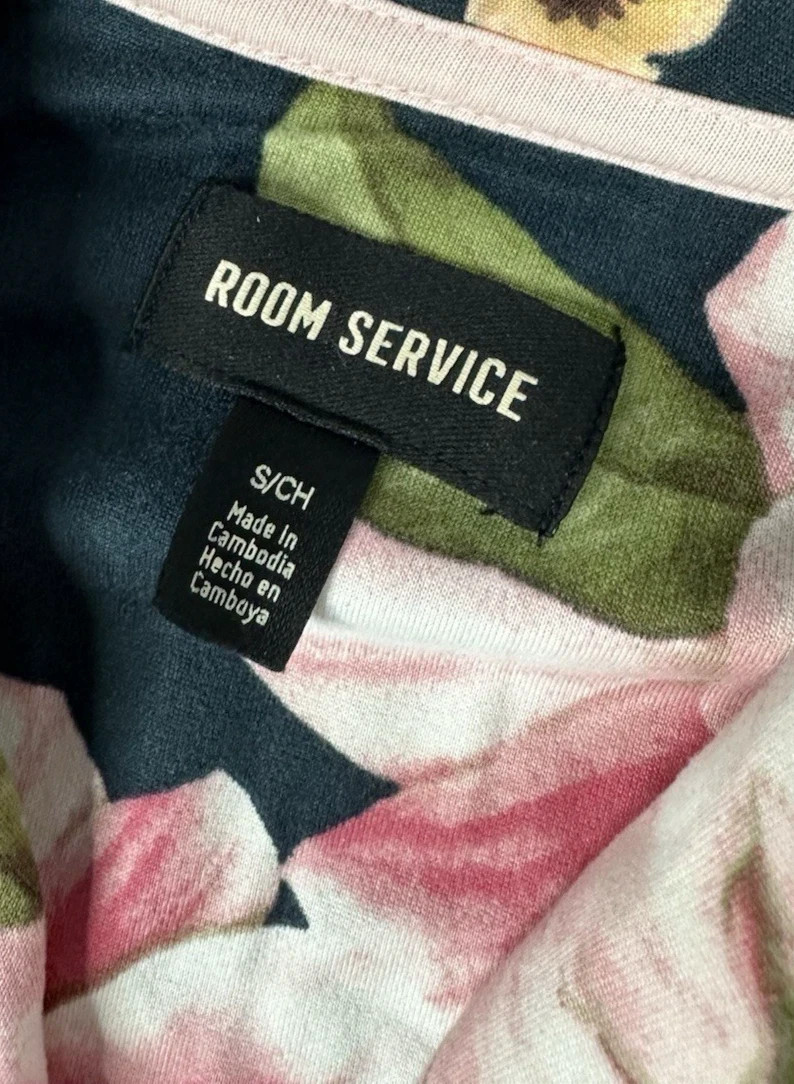 WOMEN S ROOM SERVICE SHAWL COLLAR PAJAMA SET PINK FLORAL BLACK SZ S COZY CHIC