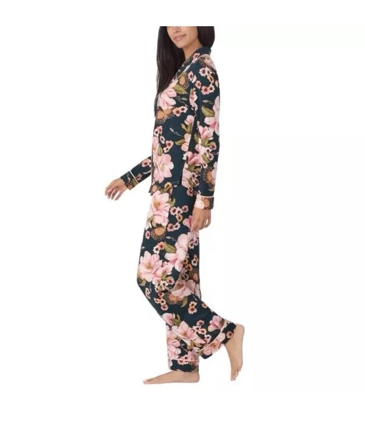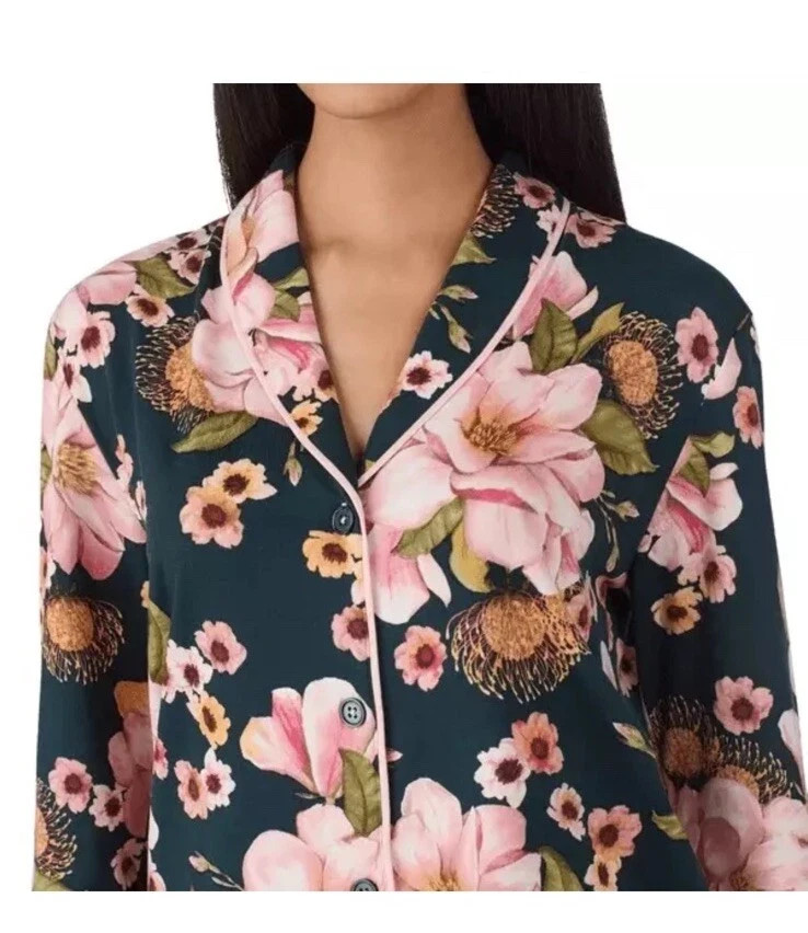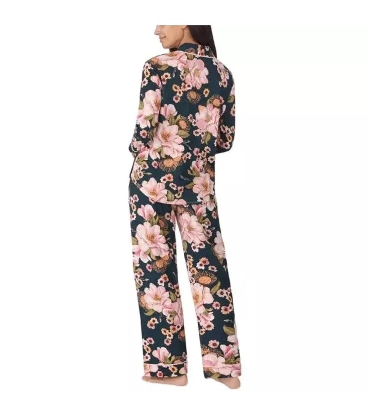 как выглядит WOMEN S ROOM SERVICE SHAWL COLLAR PAJAMA SET PINK FLORAL BLACK SZ S COZY CHIC фото