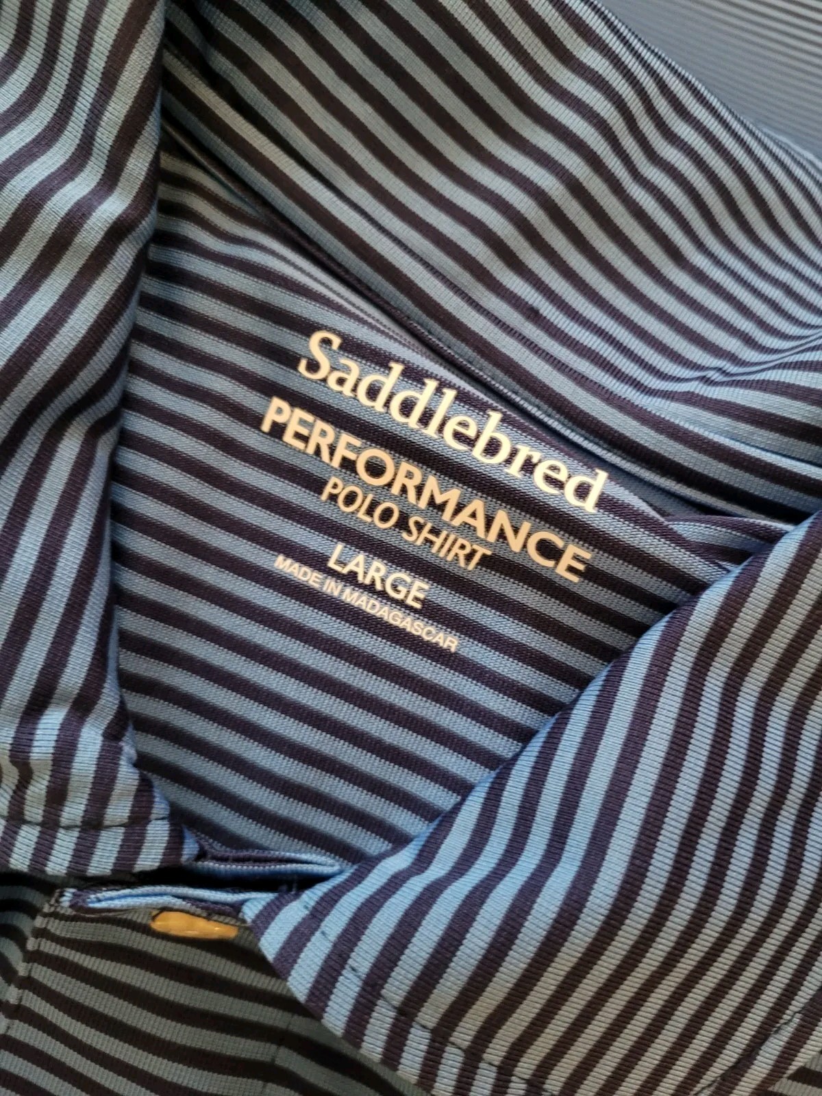 как выглядит Saddlebred Performance Polo Shirt Mens Large Blue Stripes Stretch Golf Casual фото