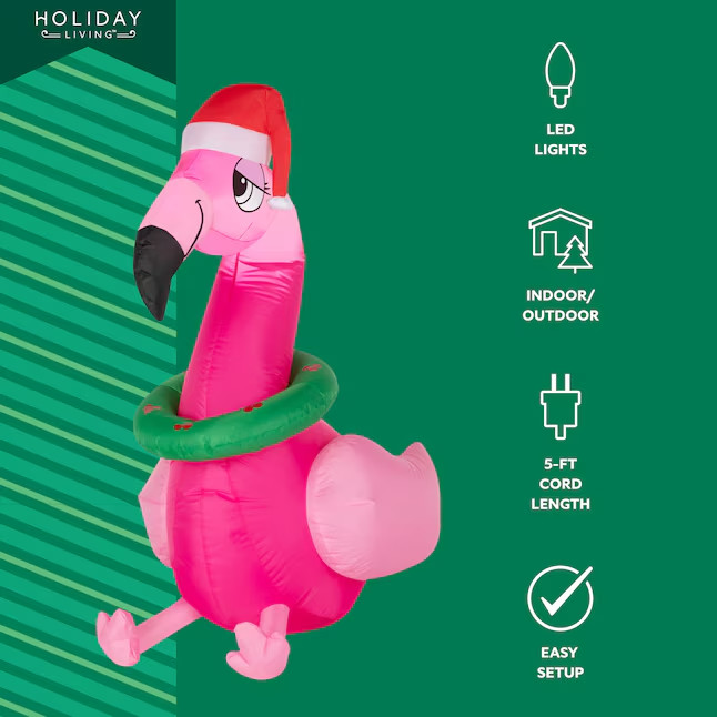 • NEW Holiday Living 3.5-ft Lighted Flamingo Christmas Inflatable
