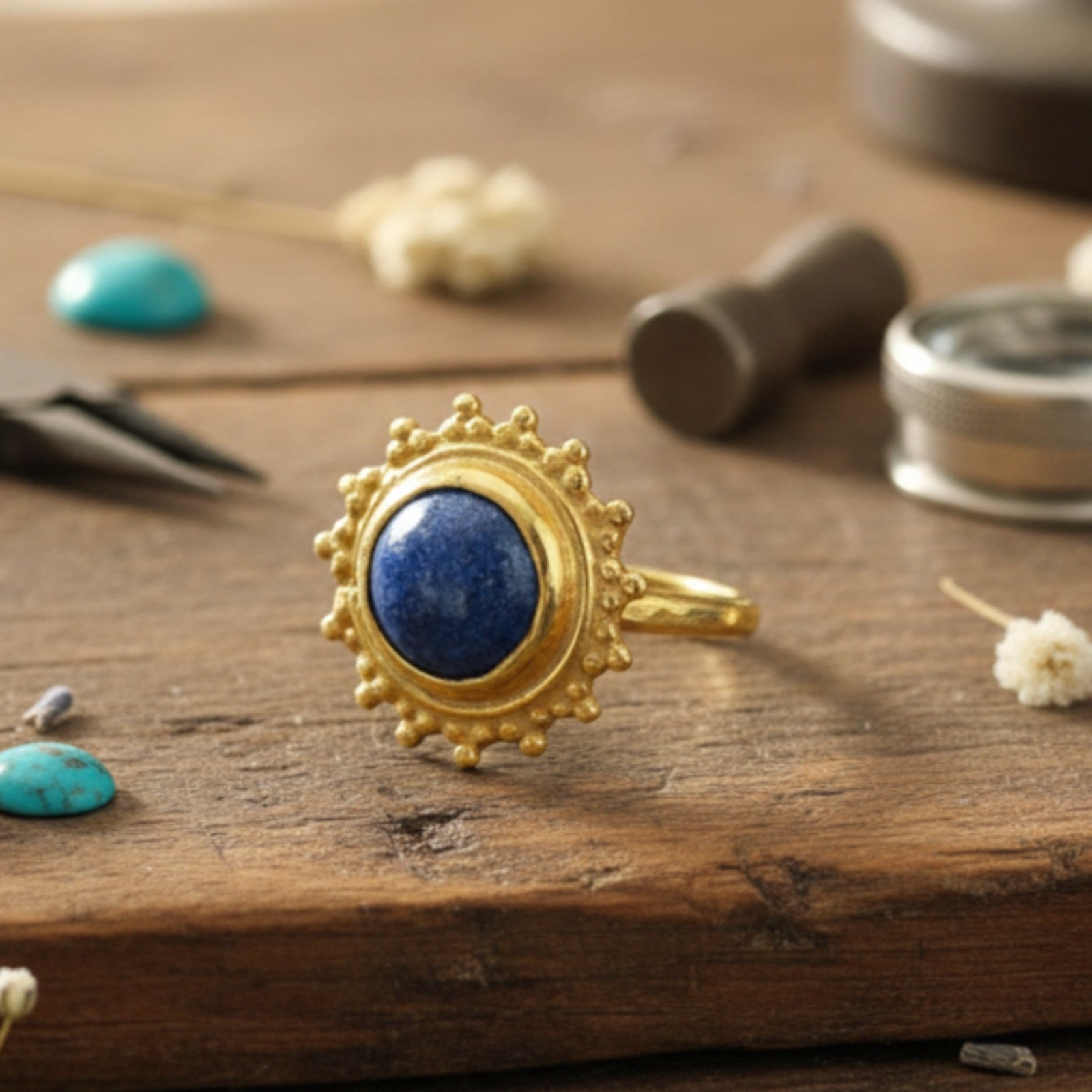 US DUTY INCL: Lapis Lazuli Wisdom Ring - Ancient Anatolian Handmade Gift 8. US