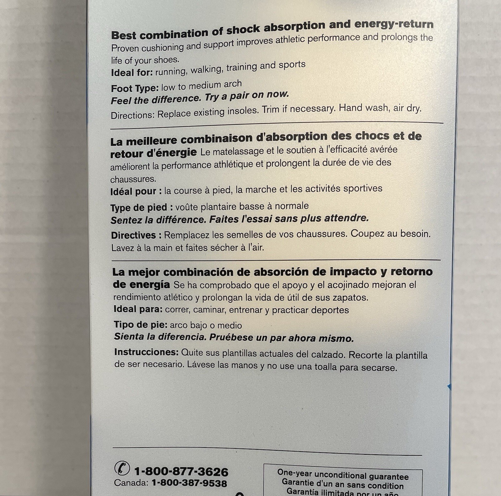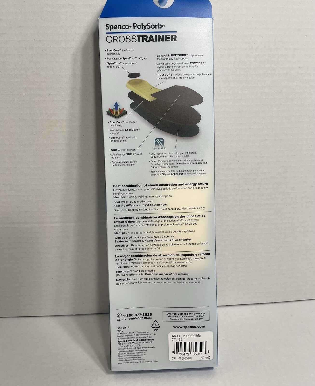 Spenco PolySorb Cross Trainer Insoles In Size 1 Womens 5-6