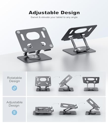 Swivel Tablet Stand with 360 Rotating Base, Adjustable Holder for Black