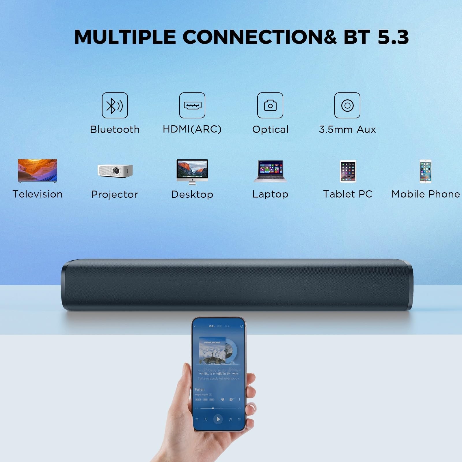Sound Bar, 50W Soundbar for Smart TV Bluetooth 5.3 Speaker 17Inch with ARC/Op...
