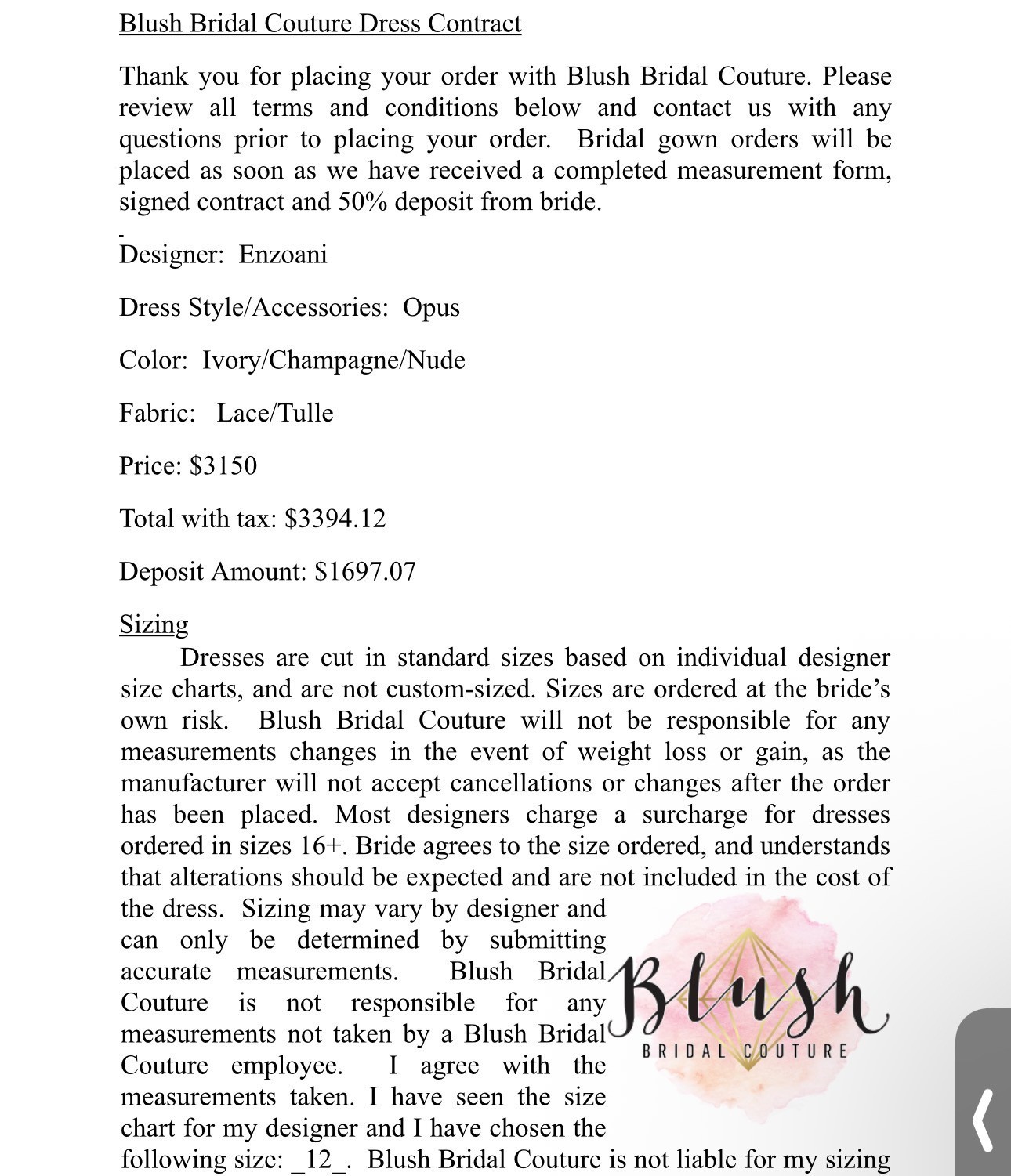 Enzoani Opus Wedding Dress - Ivory, Champagne, Nude - Size 12