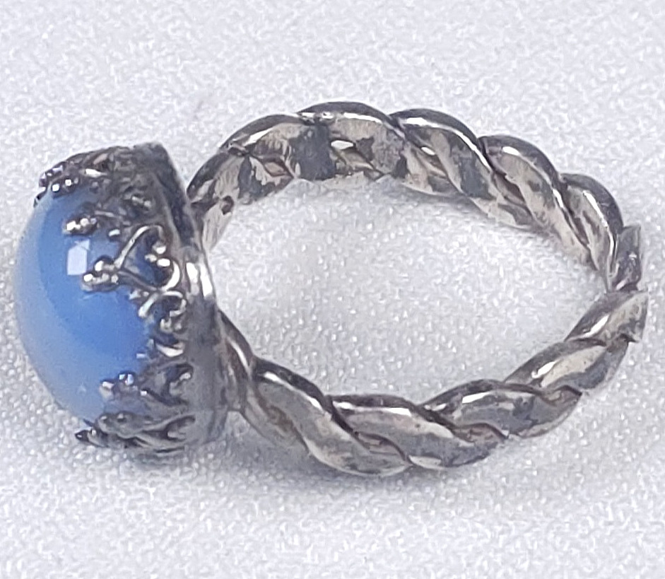 Sterling Silver Ring Size 6 w Blue Chalcedony Stone, 925 Silver 4.43 Grams Total
