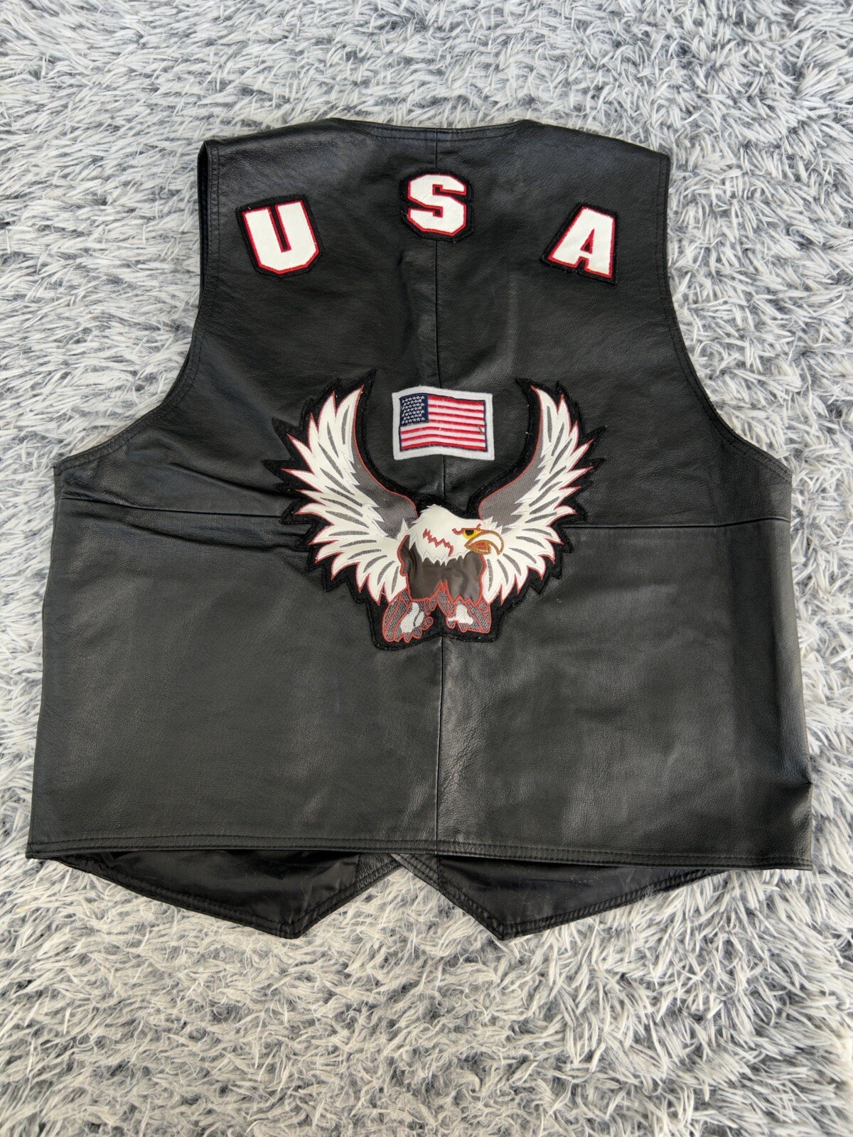 Leather USA Mens Vest Size XL Black American Flag Biker Motorcycle Eagle Patch