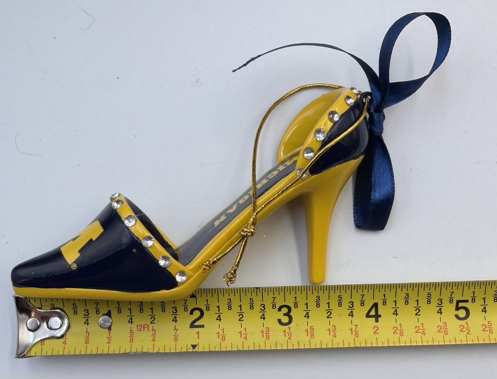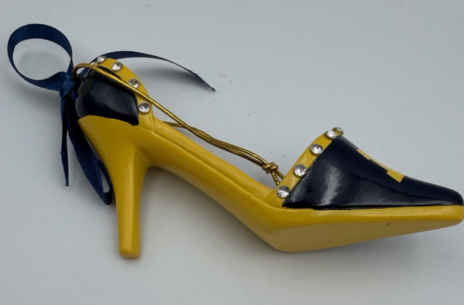 как выглядит University of Michigan High Heel Shoe Ornament Rhinestones Blue Yellow фото