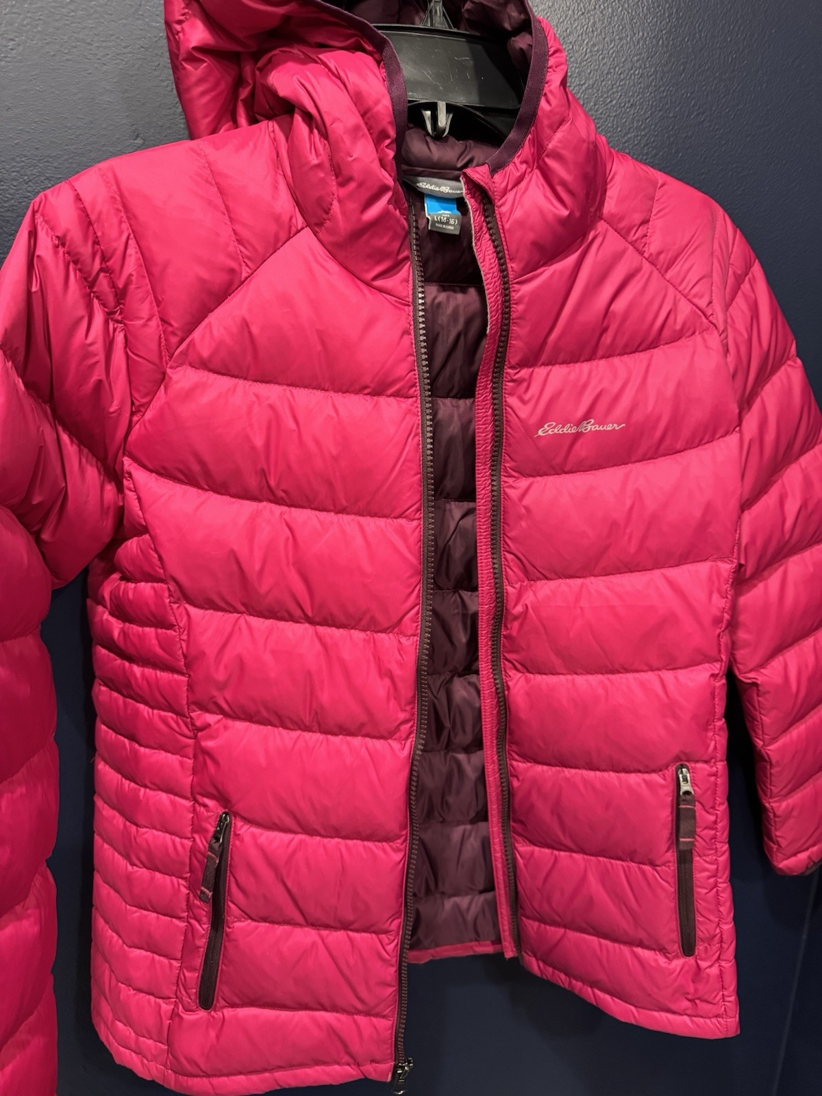 Eddie Bauer First Ascent Kids Hooded Down Jacket Raspberry Pink L 14 16