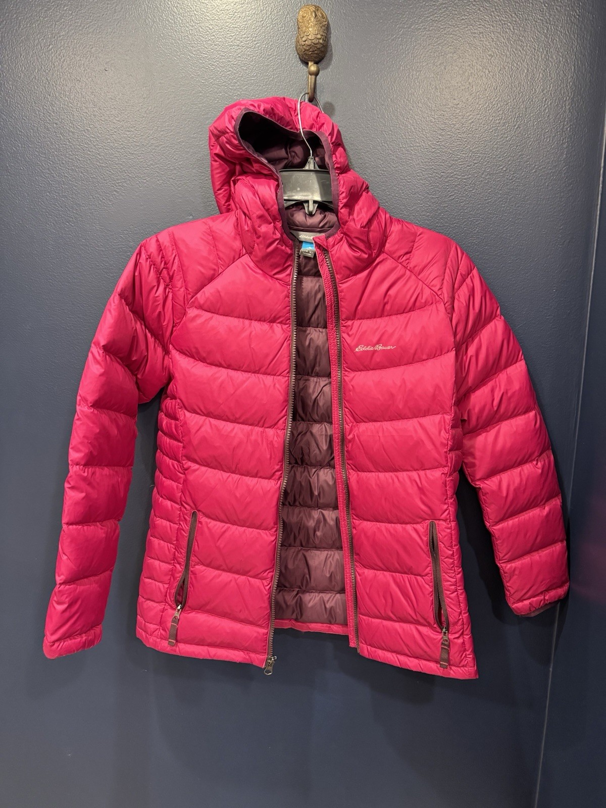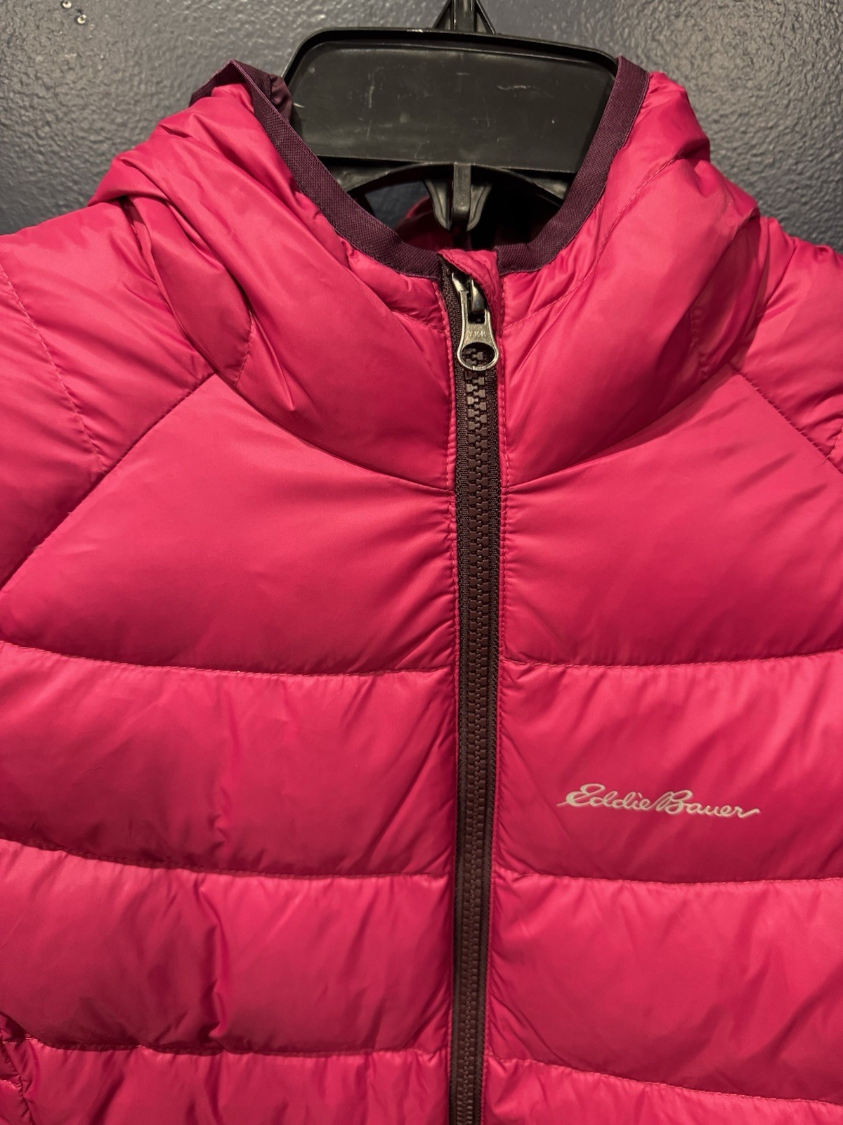 как выглядит Eddie Bauer First Ascent Kids Hooded Down Jacket Raspberry Pink L 14 16 фото