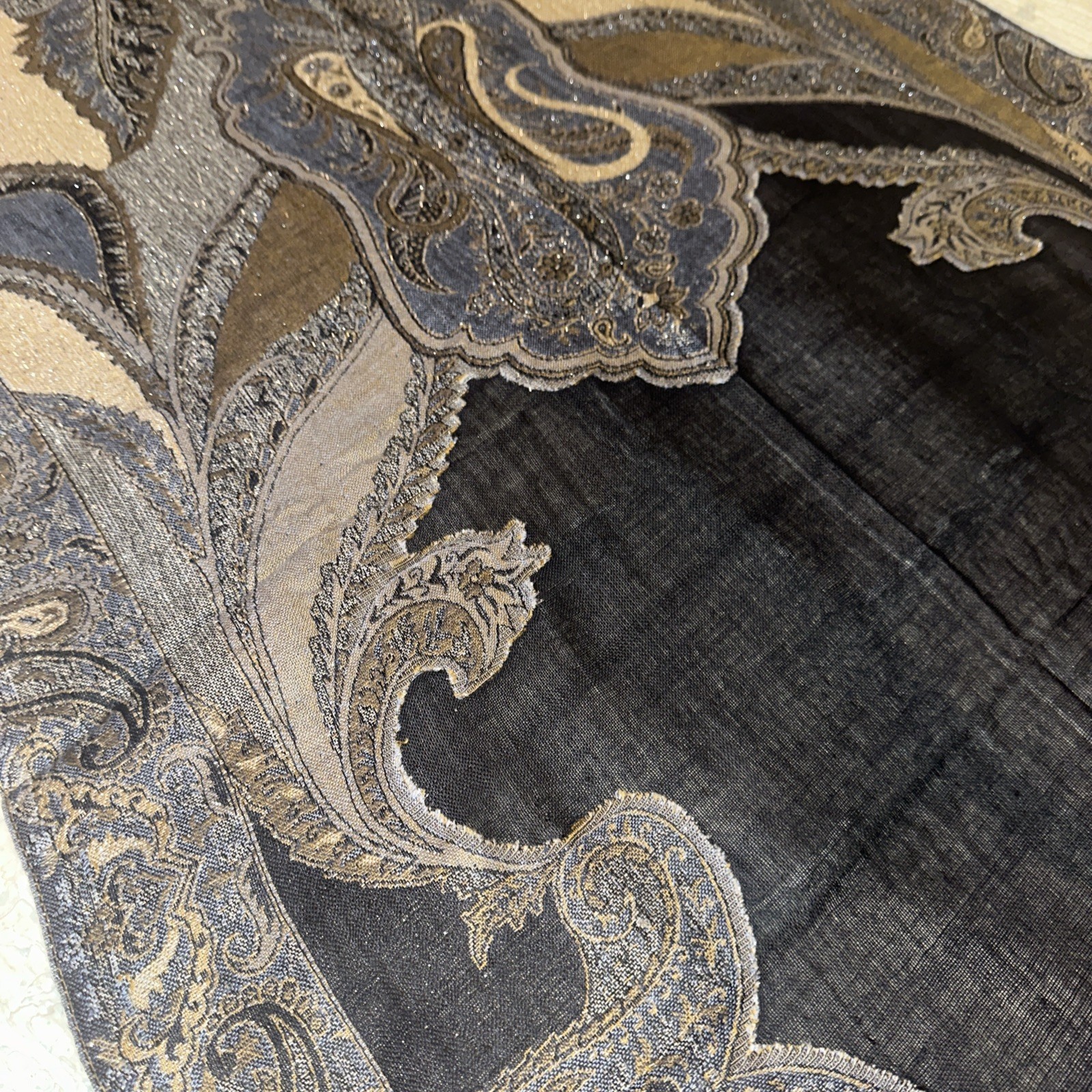 V Elegant Shawl with Black Blue Beige Combination with Silver Glitter Accents