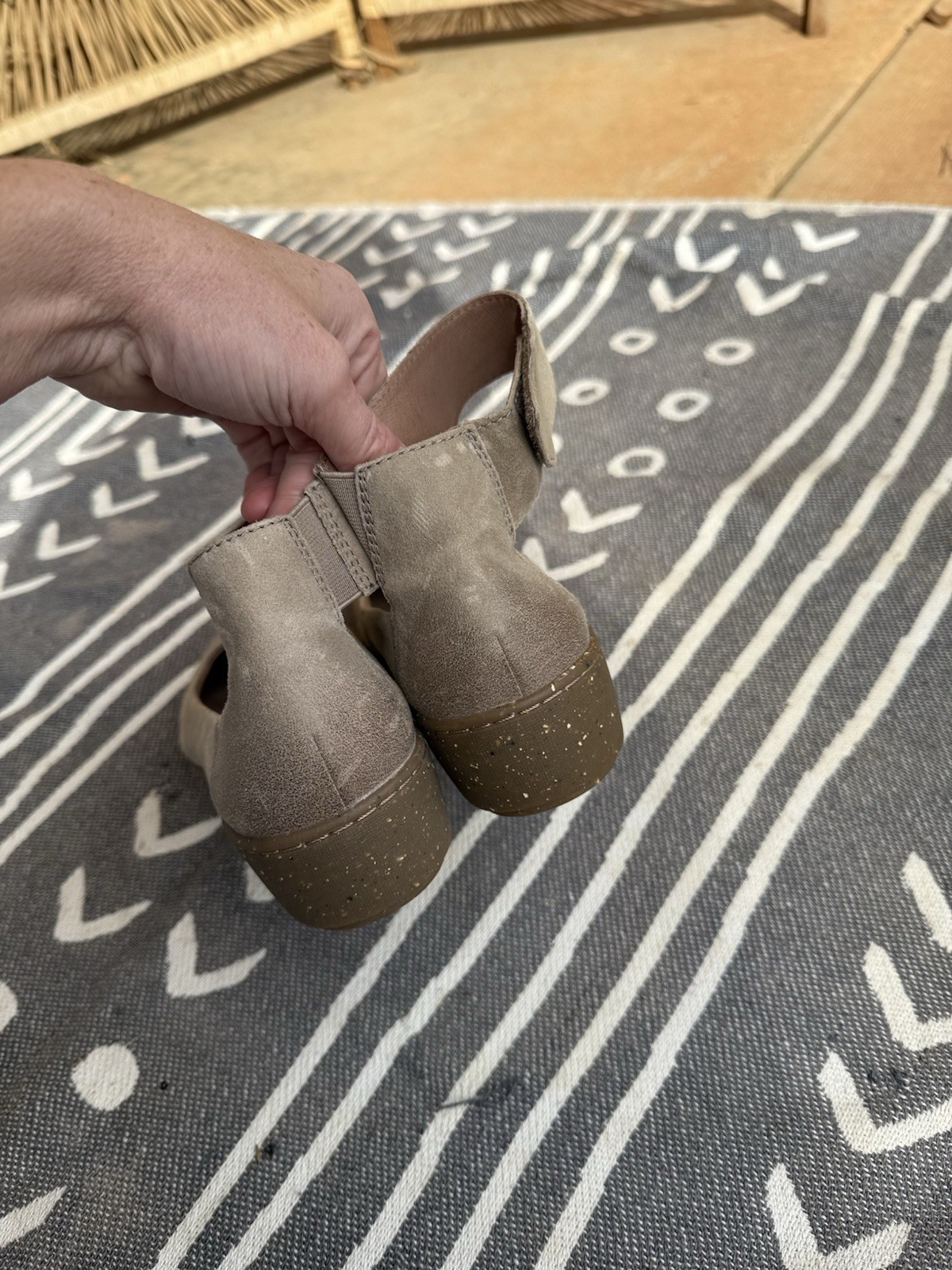 Dansko Womens Emmie Mary Jane Shoes Size 36 Taupe Leather Wedge Ankle Strap