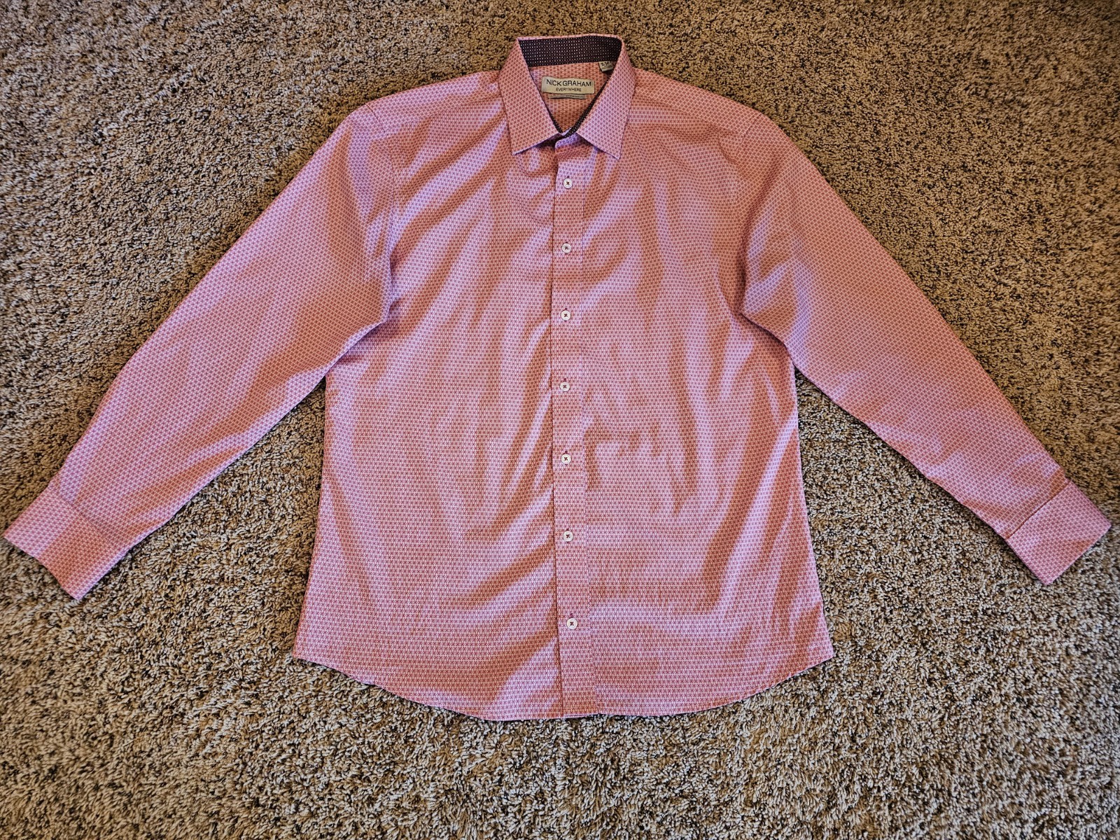 как выглядит Nick Graham Everywhere Button Up Shirt Mens L Stretch Modern Fit Pink Pattern фото