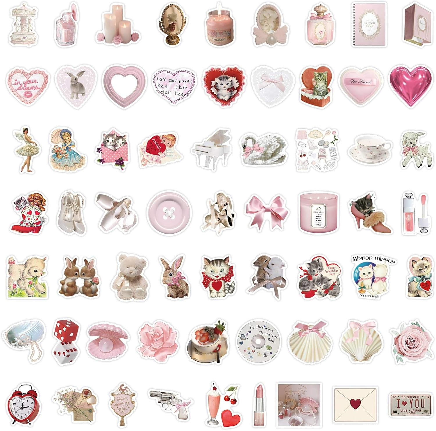 60Pcs Coquette Stickers Cute Vinyl Laptop Stickers, Waterproof Aesthetic Sticker