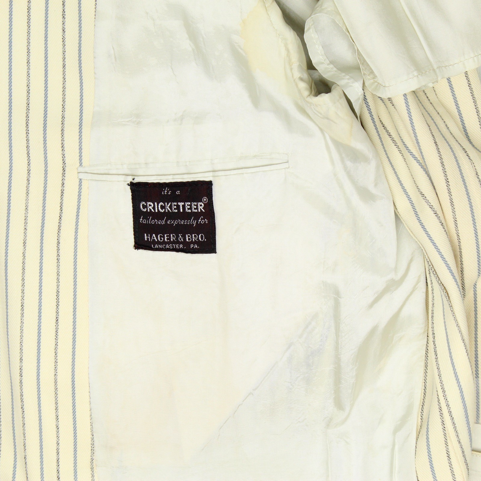 VTG 60s Cricketeer Sport Coat Mens 42R Cream Ivory Blue Stripe Wool Jacket USA