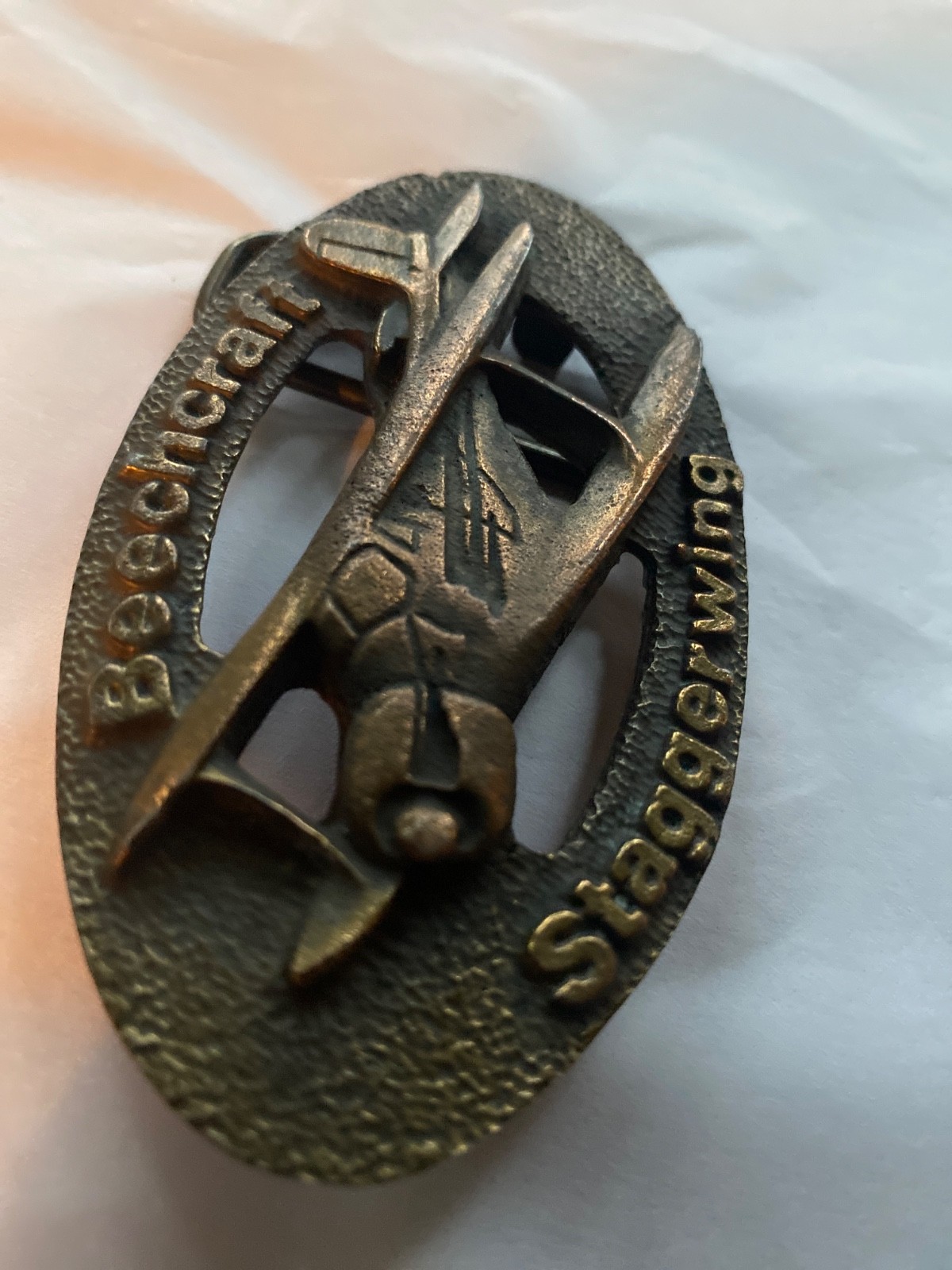 как выглядит Beechcraft Staggerwing Biplane Double Wing Aircraft Brass Belt Buckle N19467 фото
