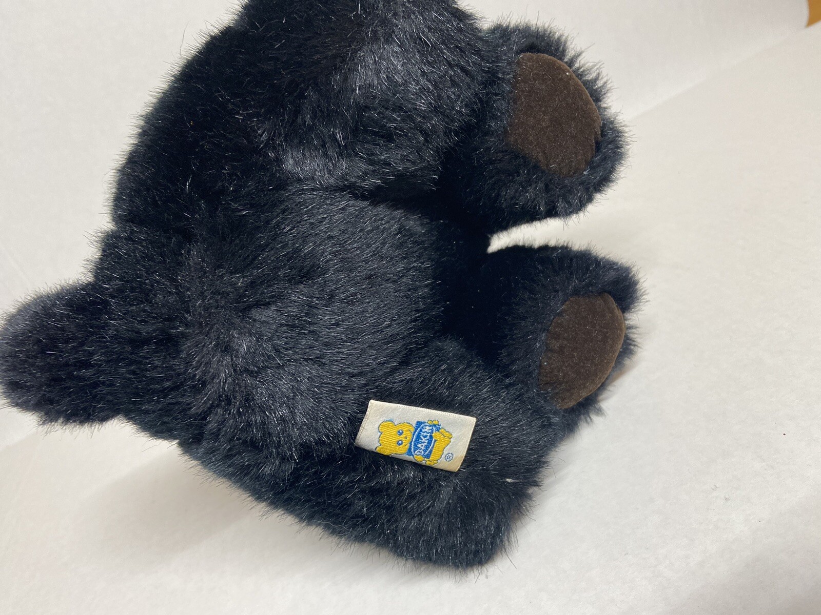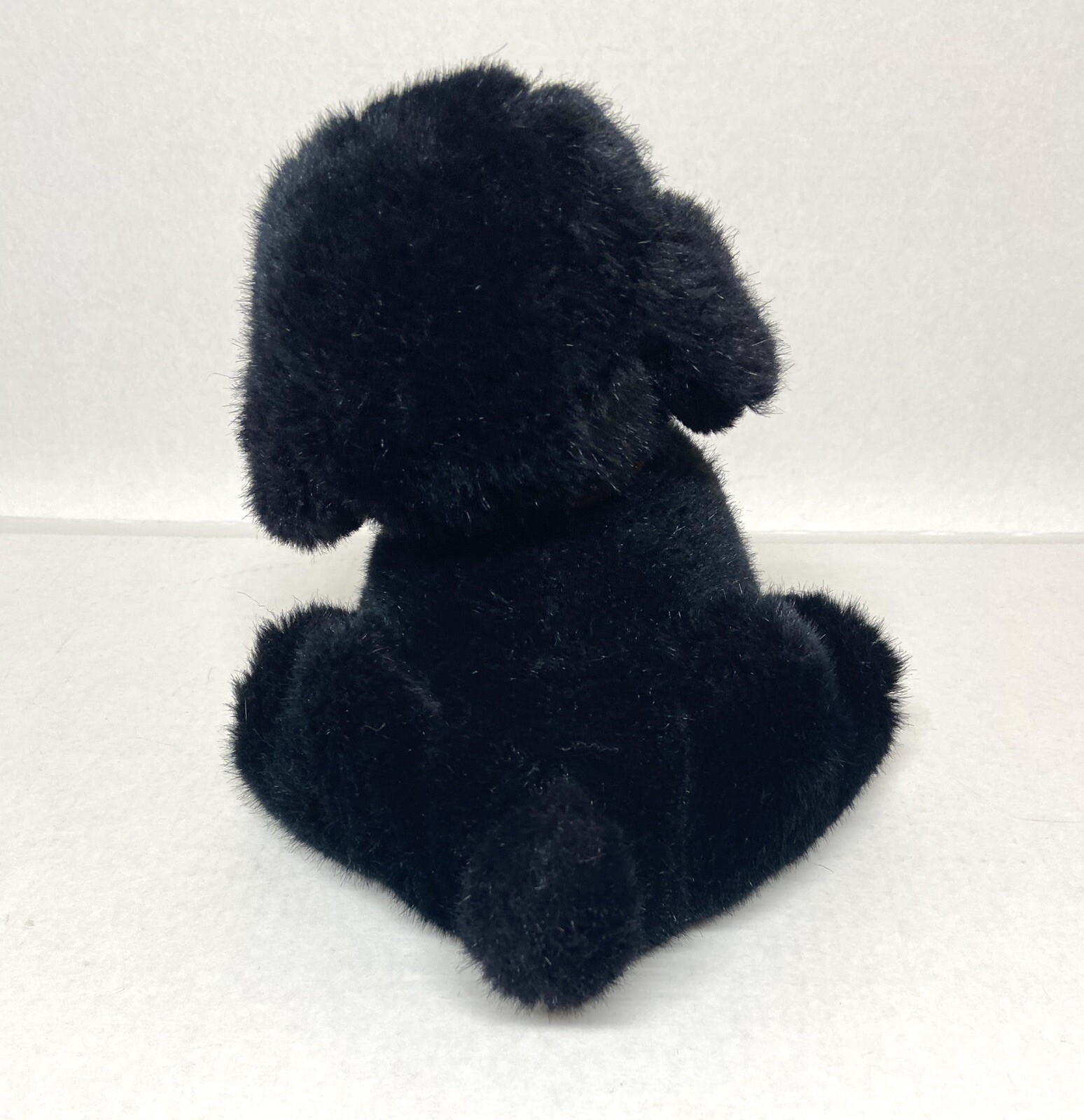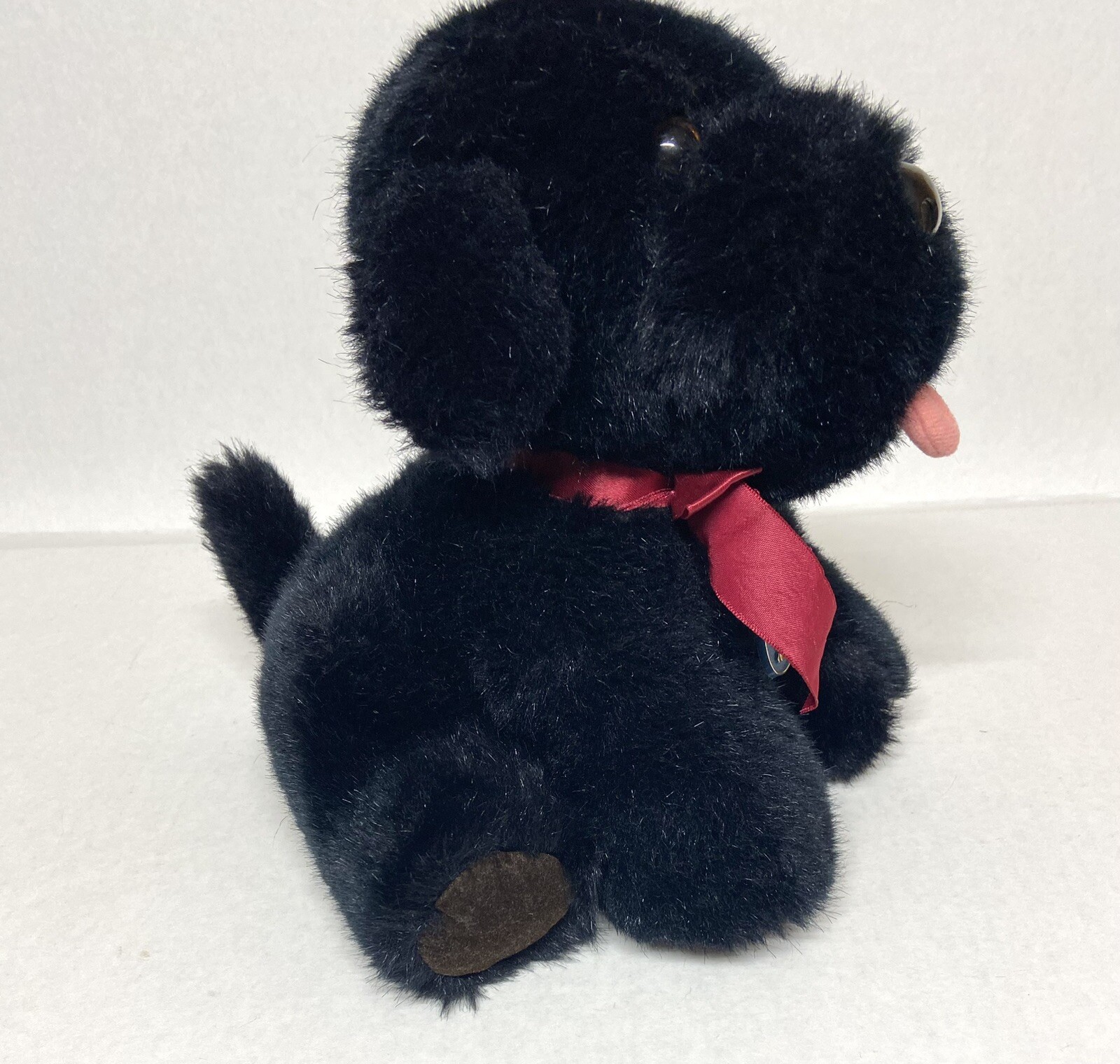 1985 Dakin Puppy Dog Black Plush Pink Tongue Stuffed Toy Blue Tag 10 red ribbon