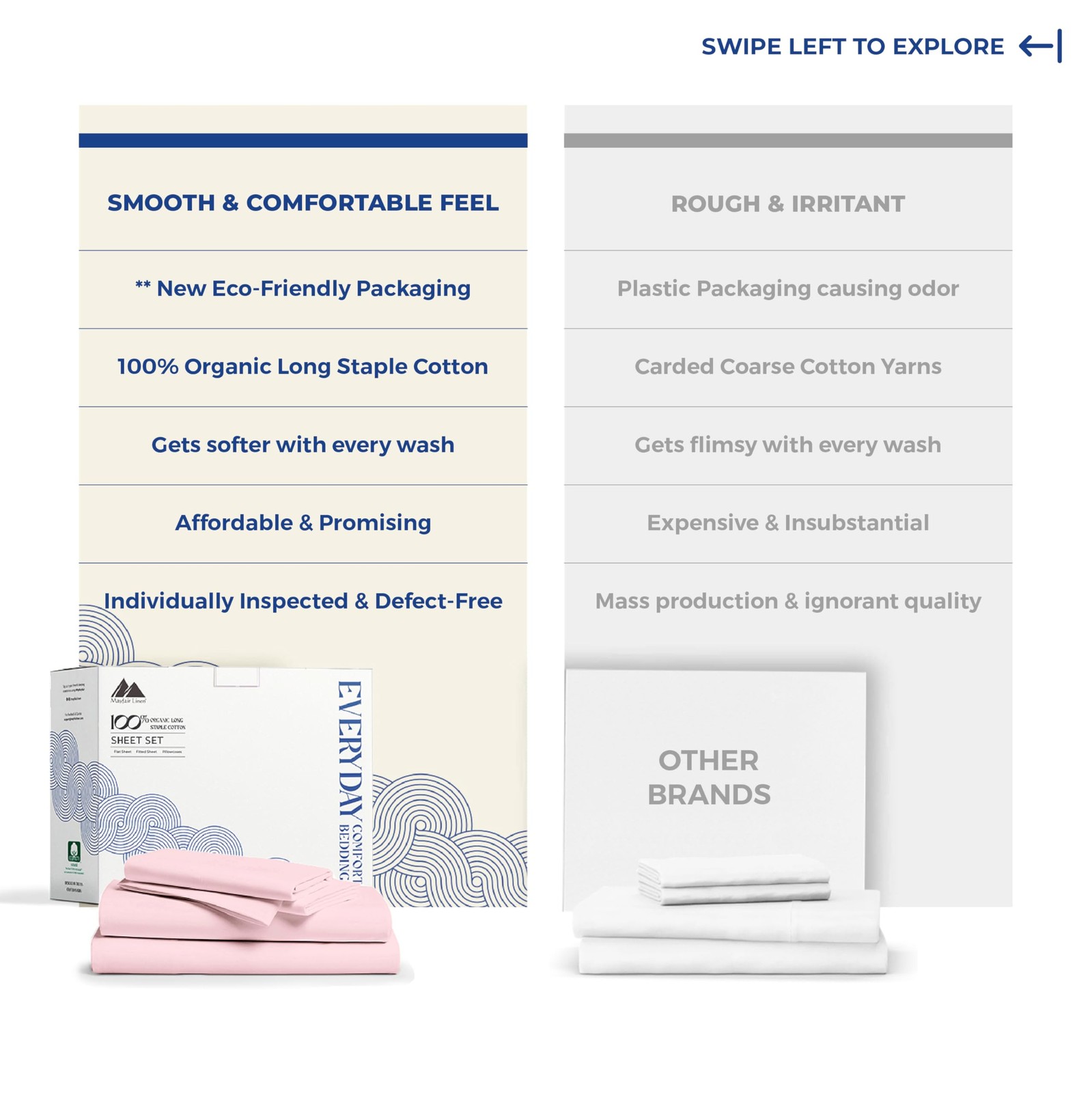 Mayfair Linen King Size 100 Organic Cotton Percale Weave 4 PC Sheet Set Blush