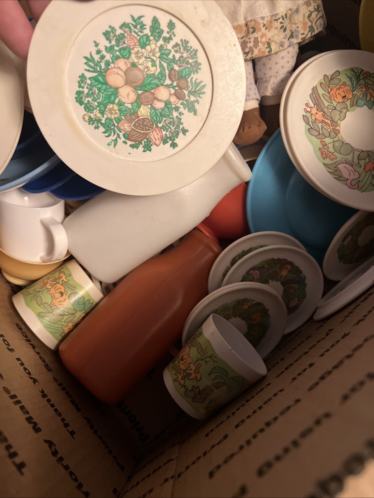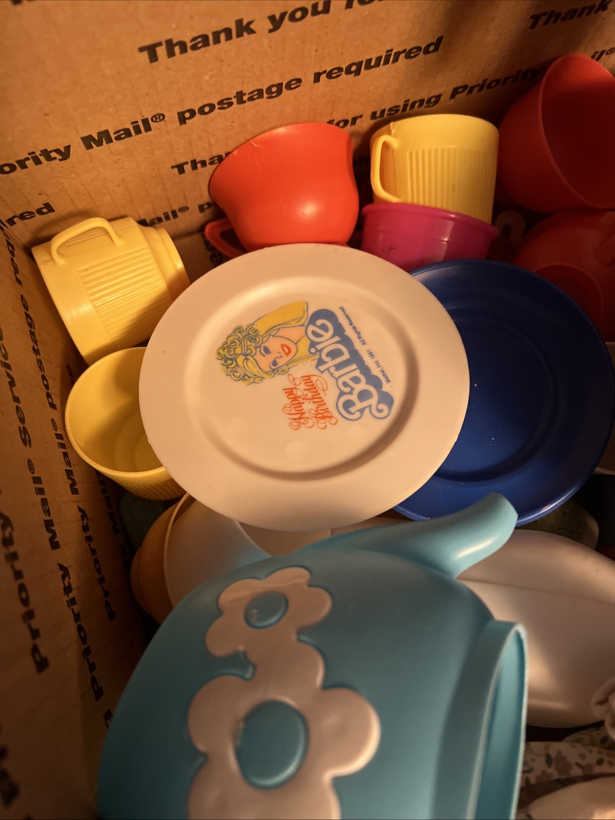 Vintage Barbie Plates, Toy Plates,Cups, Kitchen Utensils, Doll Etc