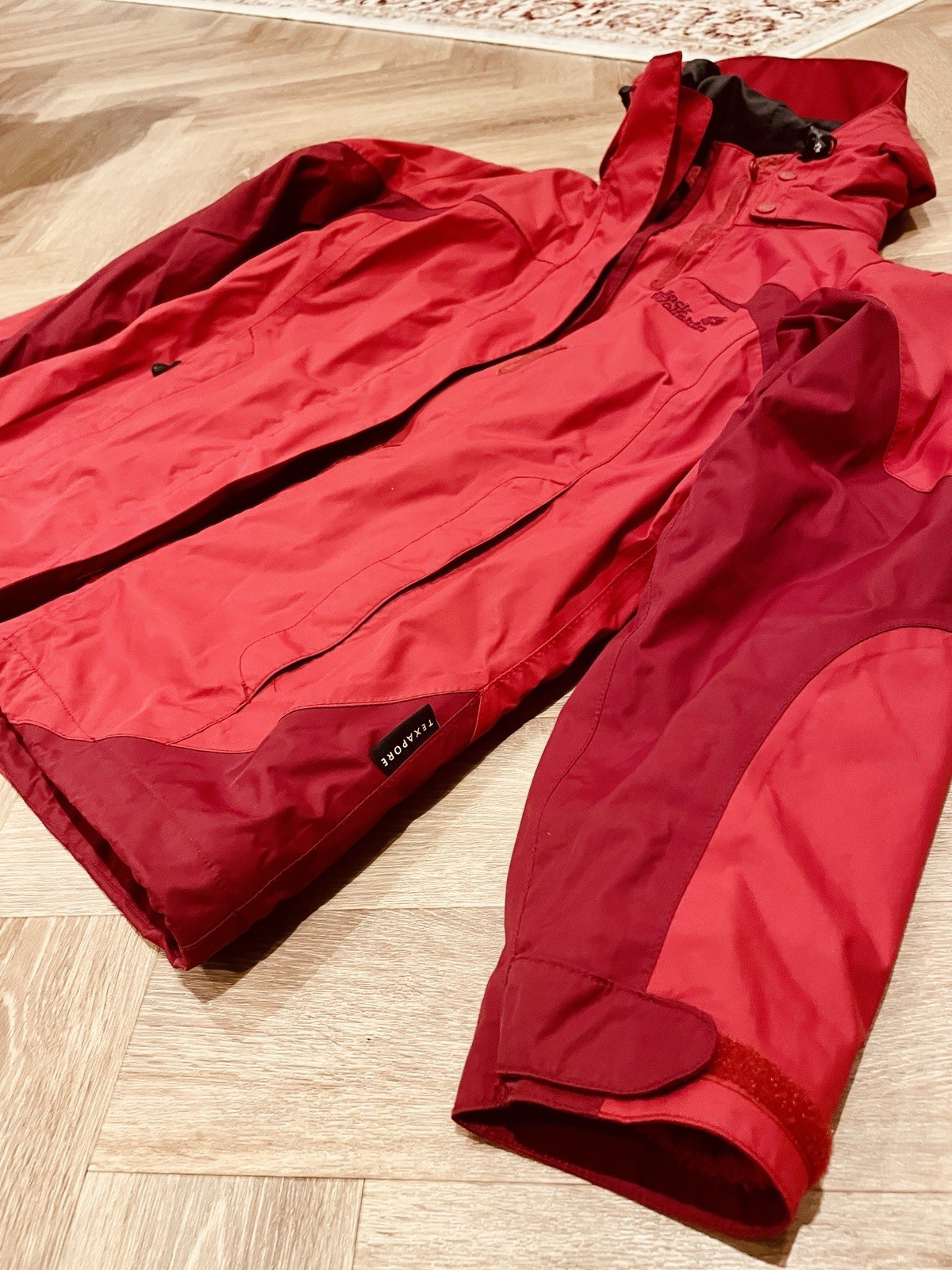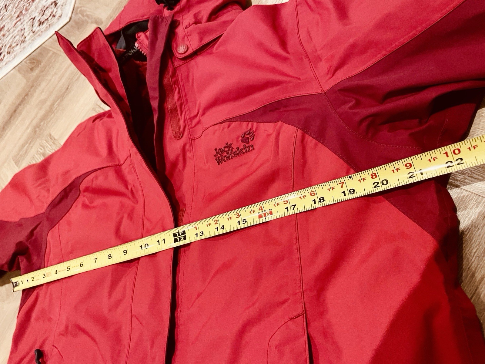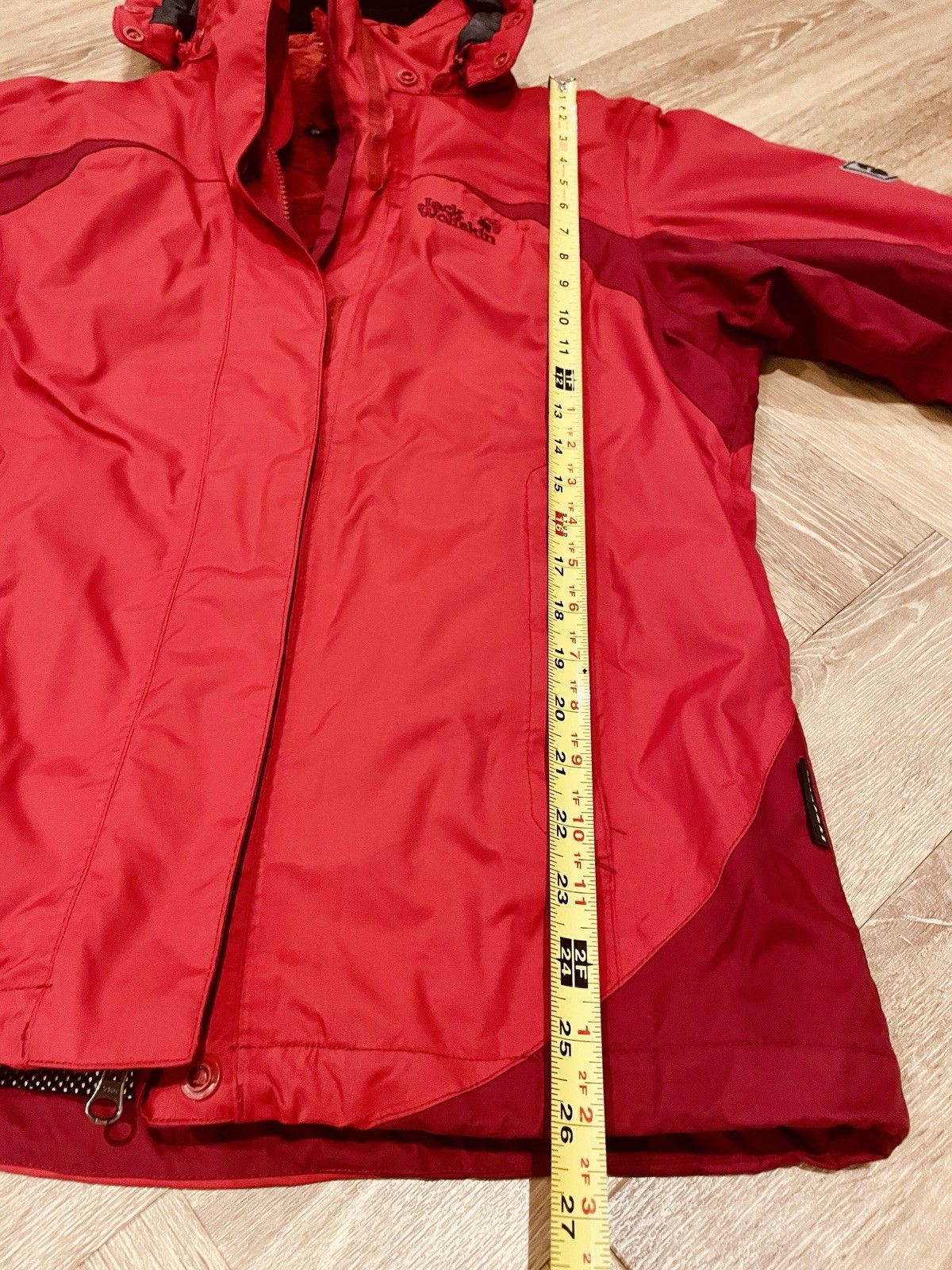 как выглядит Jack Wolfskin Womens Medium 3 In 1 Jacket Hooded Zip Fleece Shell Texapore Red фото