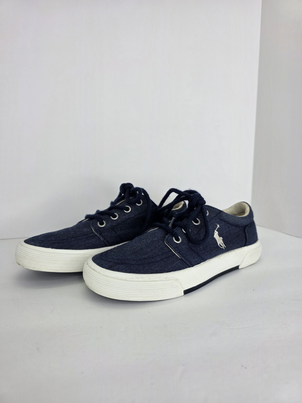Polo Ralph Lauren Kids Faxon II Lace-Up Sneakers Pony Logo Cotton Canvas SZ...
